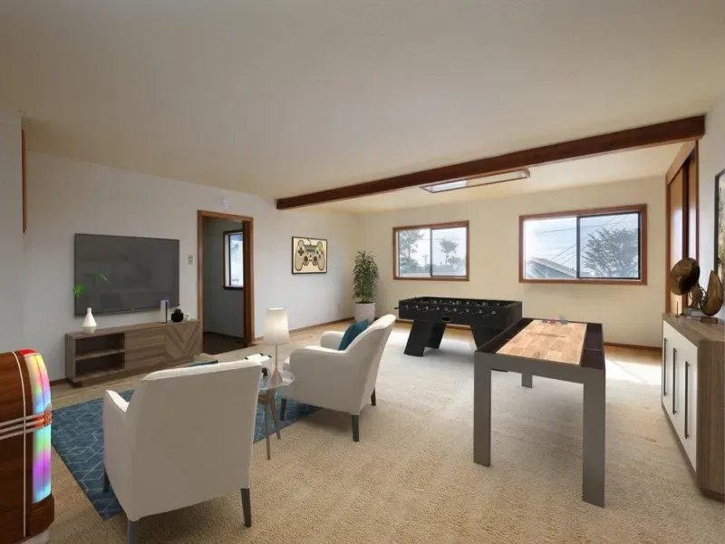 Welcome to your coastal retreat! Bask in stunning ocean views, breathtaking sunsets, and whale watching from the expansive deck and several spacious rooms in your new home by the sea. The floor plan balances comfort with versatility, while maximizing living space to accommodate your lifestyle. The main level boasts three generously sized bedrooms and an oversized bonus space to make your own. Upstairs the ocean-view living room features vaulted ceilings with warm wood accents, creating a inviting, airy atmosphere to gather while ensconced in the epic beauty of the ocean. Watch the waves from the kitchen and dining area or curl up with a good book in the cozy family room/ bedroom. Lovingly maintained by the original owner, this is a light- filled canvas for you to design your dream home. Located just minutes from pristine beaches, harbor activities, scenic trails within the Golden Gate National Recreation Area and nearby Fitzgerald Marine Reserve, this property offers an unparalleled blend of natural beauty and serene coastal living. A rare gem for those seeking the ultimate seaside lifestyle!