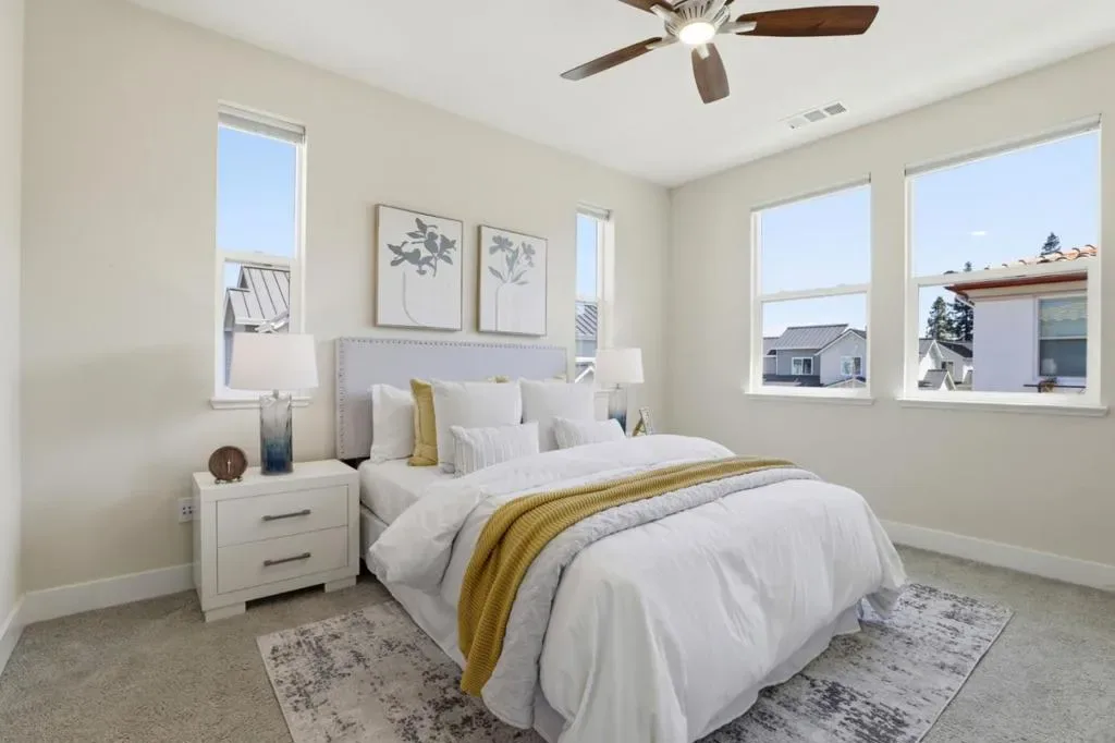 Rare peaceful corner unit in a picturesque, tree-lined neighborhood in the heart of Silicon Valley, this stunning 3-bedroom, 3-bathroom townhome combines modern living with an unbeatable location. The main level has an open floor plan with natural light designed for comfort and entertainment. The spacious living room offers balcony access and integrated into a gourmet kitchen with high ceiling. The chef’s favorite kitchen comes with quartz countertops, high-end stainless steel appliances, and ample workspace. A versatile bedroom and full bathroom on this level provide an excellent option for home office or guest suite. The luxurious primary suite features a generous walk-in closet and a beautifully designed bathroom with a double-sink vanity, creating a private retreat. Additional highlights include a large 2-car garage, an in-unit washer/dryer, and unparalleled convenience. Close to major employers such as Google, Meta, Apple, etc. Walk or bike to groceries, shops, parks, hiking trails. Downtown Mountain View is just minutes away, and easy access to highways 101 and 85. Zoned for the highly acclaimed Los Altos schools!!