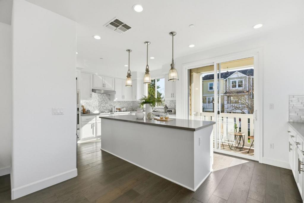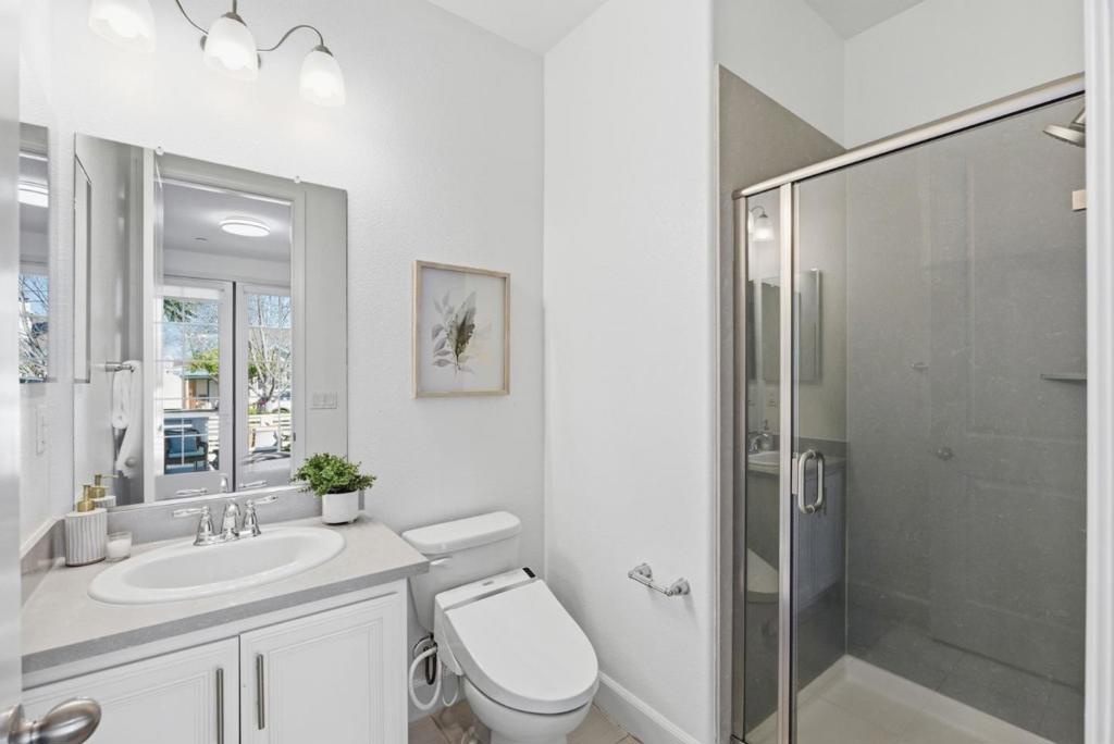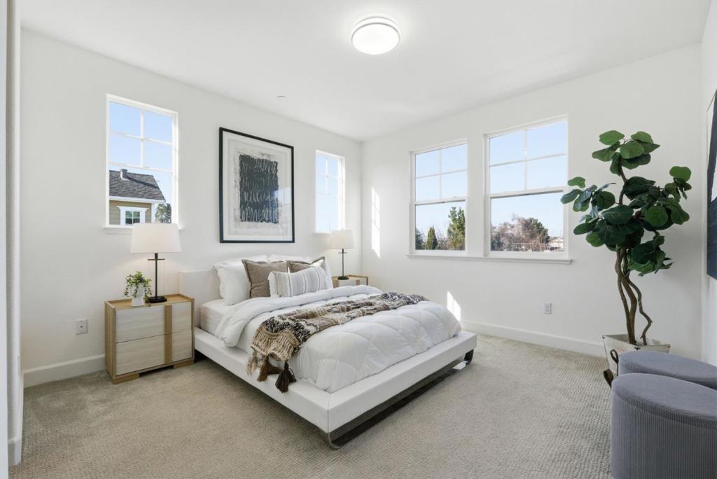 Stunning newer end-unit townhome in the highly sought-after Los Altos High School district. Surrounded by mature trees, this beautifully designed 4-bedroom, 3.5-bath residence sits in the heart of Mountain View and is filled with natural sunlight throughout. A private ground-level suite includes its own full bath and double French doors opening to a sun-drenched courtyard, offering a bright and flexible space ideal for guests, extended family, a home office, or rental potential. The chefs kitchen showcases custom wood cabinetry, sleek quartz countertops, high-end stainless-steel appliances, and a large center island. The kitchen flows seamlessly into the dining and living areas, creating an open, light-filled layout perfect for gatherings. The primary suite features a walk-in closet, while the balcony overlooks the beautifully maintained common park, providing a peaceful spot to relax and enjoy the greenery. Additional features include HOA-installed solar, central air conditioning, double-pane windows, recessed lighting, in-unit laundry, and an attached two-car garage. Ideally located within walking distance to Google via the Permanente Creek Trail, just minutes from Costco, and close to shopping, freeway access, and major tech campuses.Don’t Miss it!