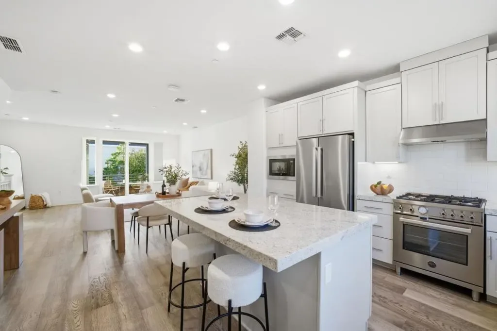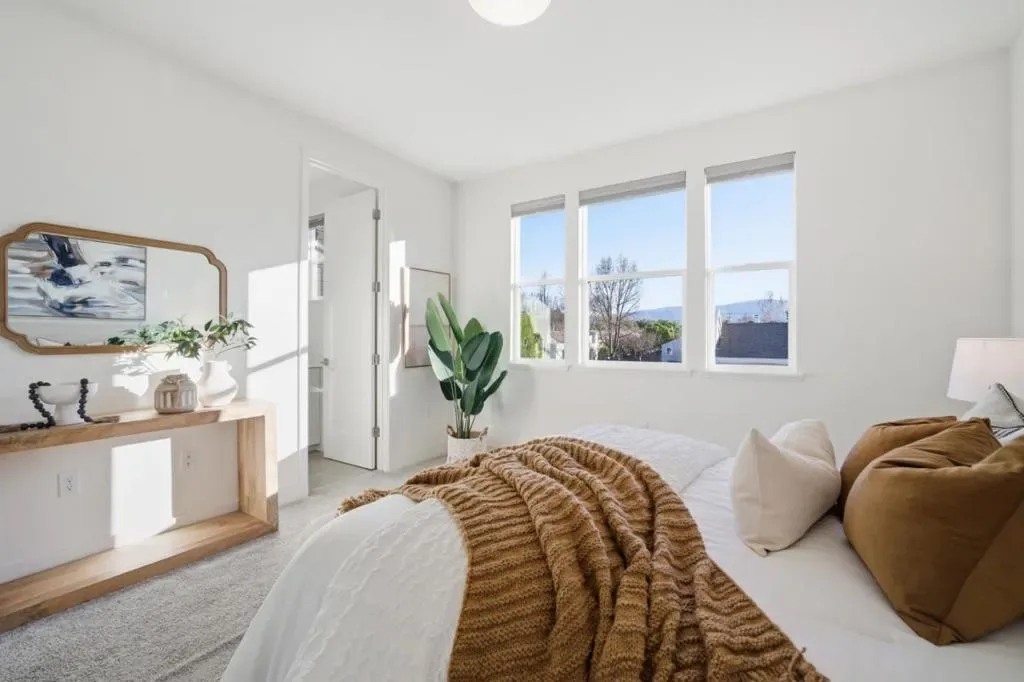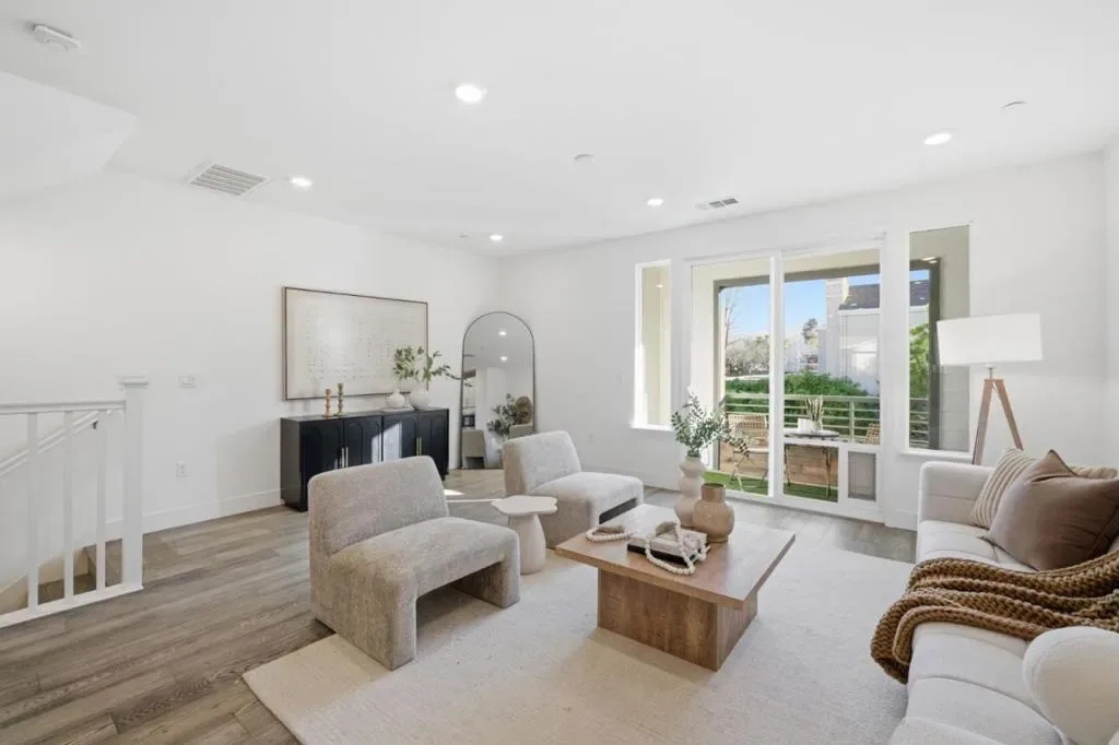 Nestled in a prime location, this beautiful 3 bed, 3.5 bath home offers 1,809 SF living space, blending privacy, modern comfort, and exceptional convenience. Ideally positioned within the community, the home enjoys a rare sense of seclusion with generous spacing on one side and the natural edge of the property on the other, while mature trees create a peaceful setting and refreshing cross breezes. Inside, an open concept floor plan filled with natural light creates an inviting atmosphere, enhanced by recessed lighting and spacious living areas perfect for everyday living and entertaining. Designed as a fully integrated smart home, featuring CAT-6A wiring, enterprise grade Ruckus WiFi on every floor, Nest smart thermostats, smart locks, smoke detectors, and Lutron lighting controls. Comfort is elevated with a Lennox PureAir hospital grade air purification system and zoned climate control. The flexible 1st floor suite offers ideal space for guests, multigenerational living, or rental potential near major tech campuses including Google, Microsoft, and LinkedIn. Additional highlights include a Rinnai tankless water heater, Rivian EV wall charger, overhead garage storage, and a private 2nd floor patio. Ideally located near parks, San Antonio Caltrain, and premier shopping and dining.