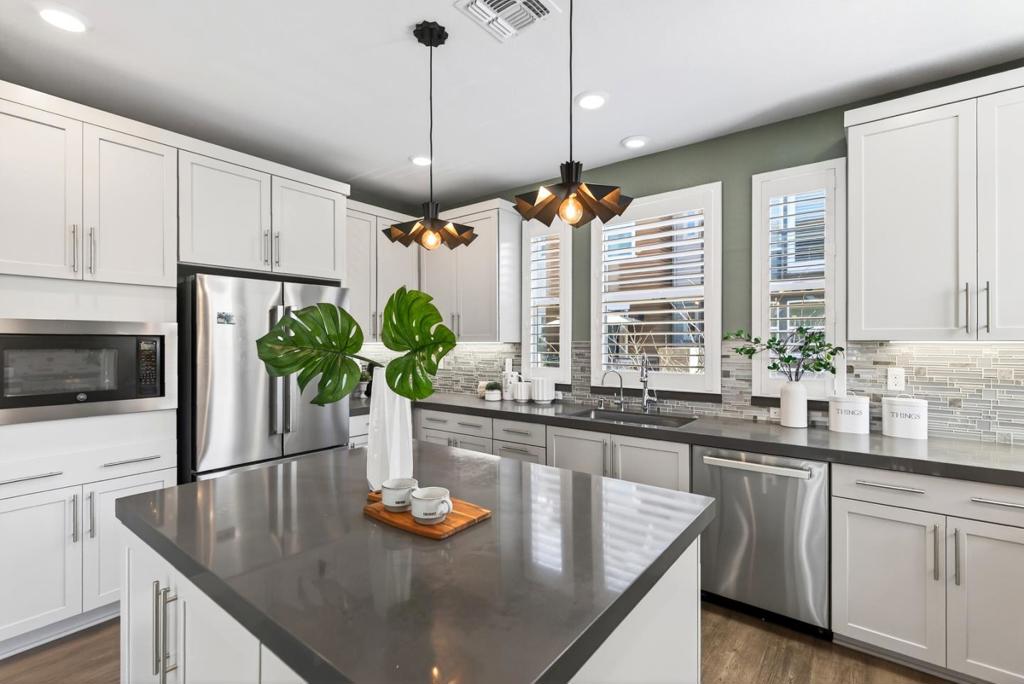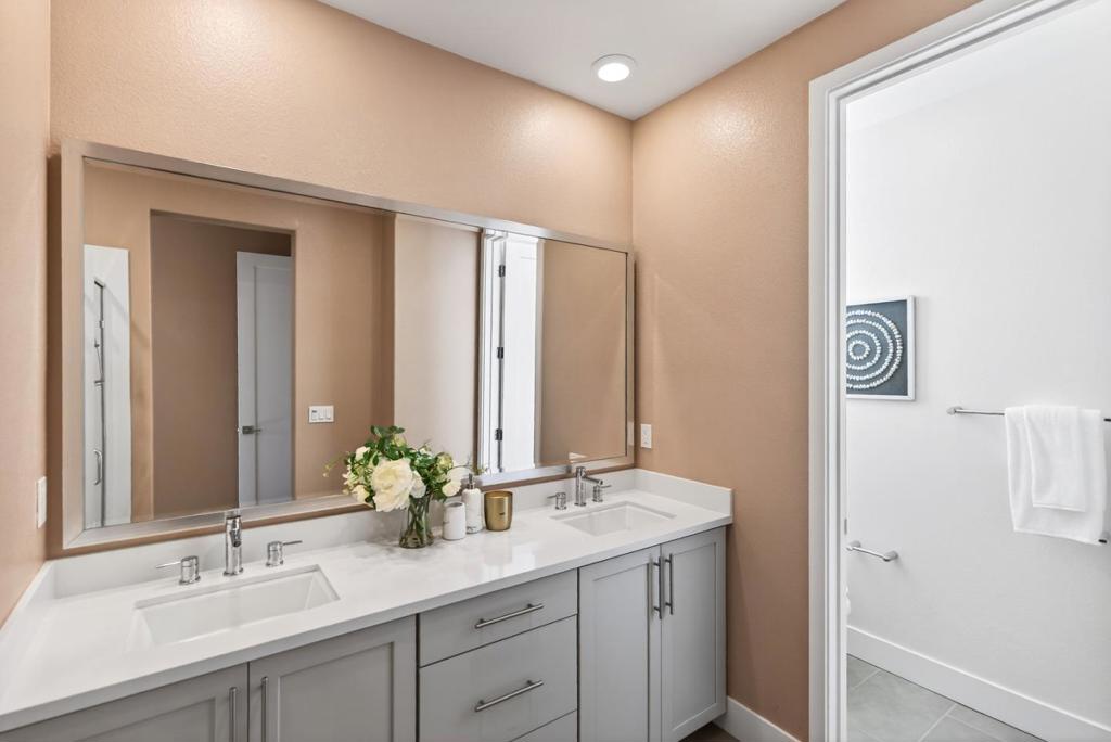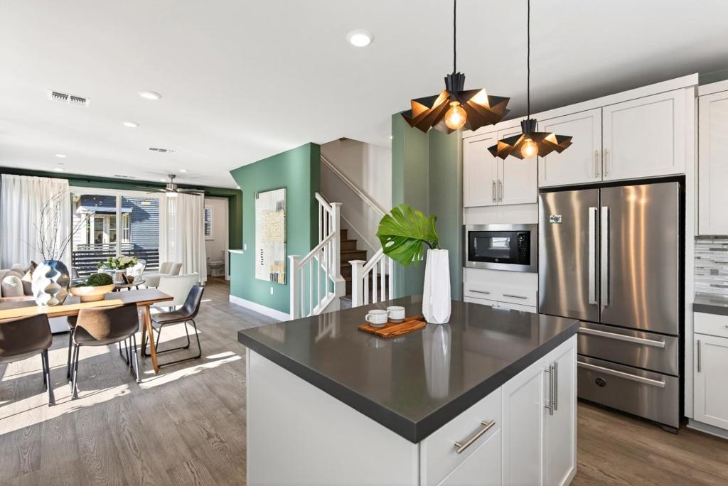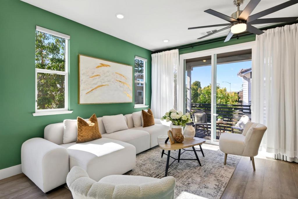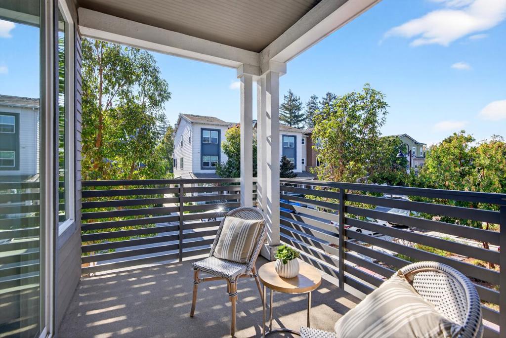Towering three-story end-unit nestled in a serene community, just steps from top-rated schools, parks and the vibrant San Antonio shopping and entertainment district. A few miles away, downtown Mountain View connects you to Caltrain/Light Rail and a weekly farmers market. Inside, high ceilings, recessed lighting, rich wood flooring and abundant natural light streaming through dual-pane windows create a relaxing ambiance. The open floor plan seamlessly connects the living and dining areas. Central heat and AC ensure year-round comfort. The gourmet kitchen is a chefs dream, boasting high-end stainless steel appliances, quartz countertops/island and vast cabinetry. All bedrooms are generously sized and include their own full bath, with the primary suite featuring a massive walk-in closet en-suite bathroom with dual sinks and stall shower. Additional highlights include a first level private in-law suite with a full en-suite bathroom, a two-car garage, utility/laundry room with washer/dryer, a large wraparound patio and a sunny balcony. Perfectly located near tech giants such as Google, Meta, LinkedIn, Apple, and top dining/shopping, with easy access to Highways 85, 101, 237, and Central Expressway. Do not miss your chance to own this luxurious end-unit. It will go FAST!