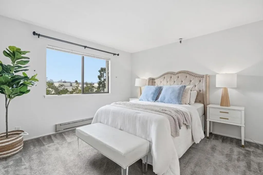 Beautifully remodeled and stylish condo in one of Mountain Views most convenient and sought-after locations. Sleek and contemporary, this light-filled home features an open floor plan with a spacious living room that seamlessly extends to a private balcony, creating a bright and inviting indoor-outdoor living experience with gorgeous sunset views. The stunning updated kitchen offers stone countertops, a full-height offset subway tile backsplash, large-format tile flooring, and stainless-steel appliances. Spacious, sun-drenched bedrooms provide oversized closets, and both bathrooms have been tastefully renovated with modern large-format tiles and elegant stone counters. New light fixtures an double-pane windows ensure excellent sound and temperature insulation, while in-unit laundry and ample storage add everyday convenience. The secure community includes underground parking, a sparkling pool, inviting clubhouse, and is ideally located near San Antonio Village, Whole Foods, shops, restaurants, public transportation, major commute routes, and award-winning Los Altos schools.