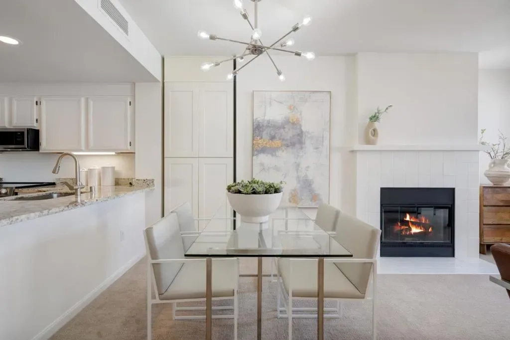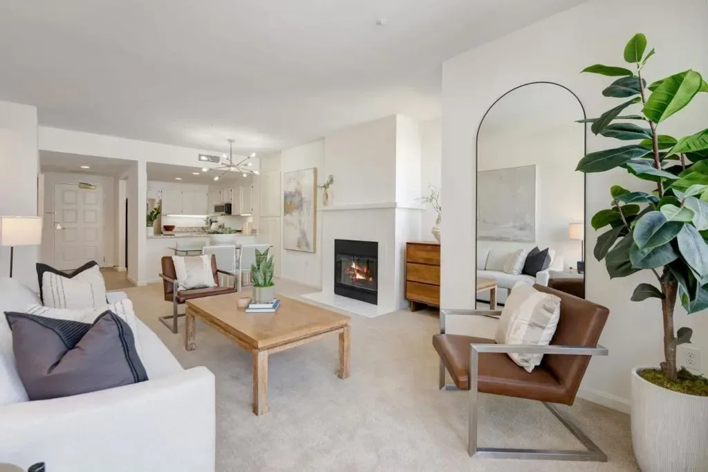 Beautifully updated end-unit condo in the desirable Domizile community featuring a bright, open floor plan with abundant natural light. The spacious living room with cozy fireplace opens to a sunny balcony overlooking a serene, lush courtyard. The open kitchen offers ample cabinetry and counter space, ideal for everyday living and entertaining. The spacious primary suite includes double closets and a versatile nook, perfect for a home office or sitting area. Additional features include in-unit laundry and central heating & A/C. Recent updates include freshly painted kitchen cabinetry and bathroom vanities, new interior paint, new carpet, updated HVAC, and newer appliances (under 2 years). Residents enjoy a secure, gated community with elevators and amenities including a pool, gym, sauna, and steam room. Includes assigned underground parking, storage, ample guest/unassigned parking, and concierge service six days a week. In a highly sought-after location just steps from The Village at San Antonio Center with Whole Foods, Trader Joes, shopping, dining, and fitness. Top-rated Los Altos schools (Almond, Egan, Los Altos High). Close to downtown Mountain View, downtown Los Altos, Google, VTA, Caltrain, and major commute routes.