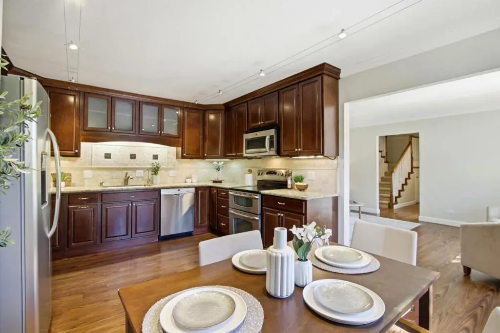 Tucked away in a quiet location set far back from Rengstorff Avenue, this rarely available four-bedroom end-unit condo offers incredible space and value in Mountain View. With thoughtful upgrades throughout, the home features a beautifully kitchen with granite countertops and a spacious eat-in area, perfect for gatherings. The versatile floor plan includes three bedrooms upstairs plus a main-level bedroom ideal for a home office, guest suite, or den. Enjoy the comfort of two levels of living with abundant natural light and privacy. A dedicated in-unit washer and dryer provide everyday convenience. Ideally located just minutes from Google and other major tech employers, this home offers unbeatable access to the region’s innovation hub. Enjoy close proximity to shopping, dining, parks, and major commute routes, making daily life effortless. A fantastic opportunity to own in one of Silicon Valley’s most desirable and centrally located communities.
