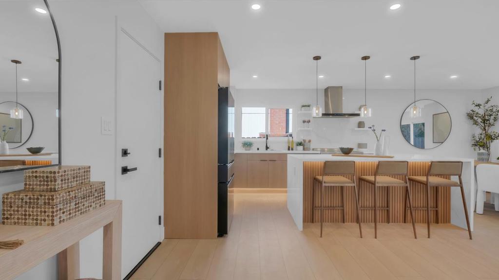 Nestled on a quiet, tree-lined street in the heart of Mountain View, this extensively remodeled, fully permitted 5b/2.5b house offers the perfect blend of sophisticated style and everyday functionality. The house features a stunning new kitchen with a central island, custom cabinetry, and premium stainless-steel appliances. The highly coveted ground-level primary suite, serves as a private retreat, complete with a walk-in closet and a ensuite featuring dual custom made vanities and an oversized shower. Upstairs, you’ll find three bright bedrooms perfect for family. Step outside to a large, private beautifully landscaped garden and expansive deck designed for seamless indoor-outdoor entertaining. Many upgrades include 200A electricity panels, new kitchen/baths, new stair handles, new floors, new furnace with new ducts. Just steps from the vibrant Castro Street dining scene, local supermarkets, and zoned for the highly acclaimed Los Altos High (Buyer to verify).