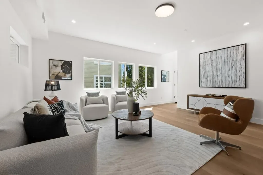 HUGE Price improvement – This new, 4-bedroom home in Mountain View is the last Unit out of 9 Units in the project and just completed in 2024.2025 – three-level residence offers 1,850 sf of living space tailored to the needs of a contemporary lifestyle. Enjoy a ground-level guest suite, the main level with open living space and a chef’s kitchen, with lots storage space and a private balcony for al fresco enjoyment, and the expansive, upstairs primary suite. This stunning open-concept floor plan boasts West Elm lighting & high-end finishes throughout. The epitome of luxury living, from beautiful Flooring, Pantry, Shaker Cabinets, Double ovens, LaCava & Kohler bathroom Sinks, Toto toilets, dual-zone HVAC, Washer & Dryer. Window covering is included, as well as a private front porch, private balcony, and amazing low-maintenance landscape managed by the HOA. Attached, 2-car garage with a pre-installed wiring for EV charger, Plumbed for Solar. This location puts everything the area has to offer within easy reach – downtown Mountain View and Los Altos are short drives away; major Tech campuses, including Google, Microsoft, ARM, Intuit, NVIDIA, and Meta. A charming City park is almost next door. Featuring award-winning MV/Los Altos Schools (top-rated Los Altos High School).