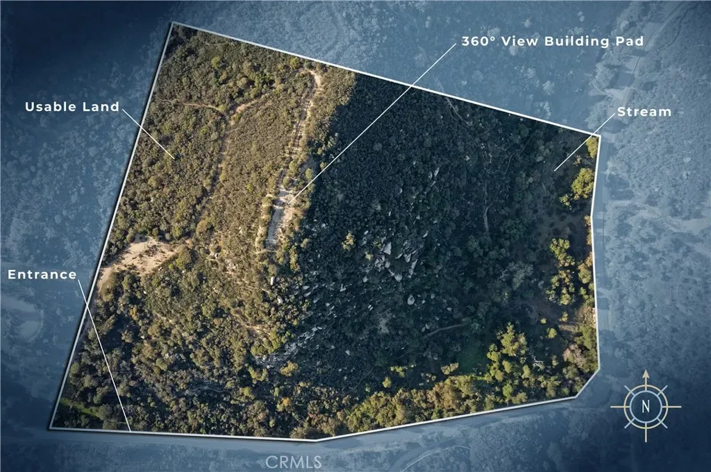 APN: 931040010…ONE OF THE LAST BIG PARCELS ON THE SANTA ROSA PLATEAU! This one has it all…Massive views, usable land, almost year-round stream, ancient oaks, stunning outcroppings, nearby power and water, easy access on a corner of paved roads and direct trail access. Almost 19 acres in La Cresta Highlands with a hilltop building site and 360-degree views of the Cleveland National Forest, Big Bear, Mt. San Jacinto, Mt. Palomar, the Temecula Valley and the local La Cresta community. In addition, this parcel has a magical wonderland below with a significant stream that runs almost year-round and canopies of oaks that are 100s of years old. The land is raw, but when you hike to the top, the potential is very clear. Private water wells are allowed here, too! This is an exciting opportunity to build a Dream Estate on one the Plateau’s most epic parcels! *****LA CRESTA & THE SANTA ROSA PLATEAU: 5-ac minimum parcels, minutes to schools, restaurants, hospitals, shopping, 15 Fwy & Temecula Wine Country. Enjoy this peaceful ranch community w/no commercial businesses, robust social activities, miles of private community trails & 1000s of acres of Ecological Reserve…All less than 1.5 hours from LA, SD, OC, Palm Springs & Big Bear. Discover the country, yet convenient, lifestyle of La Cresta, Tenaja & the Communities of the Santa Rosa Plateau!