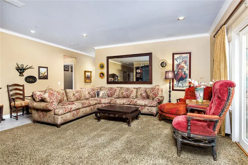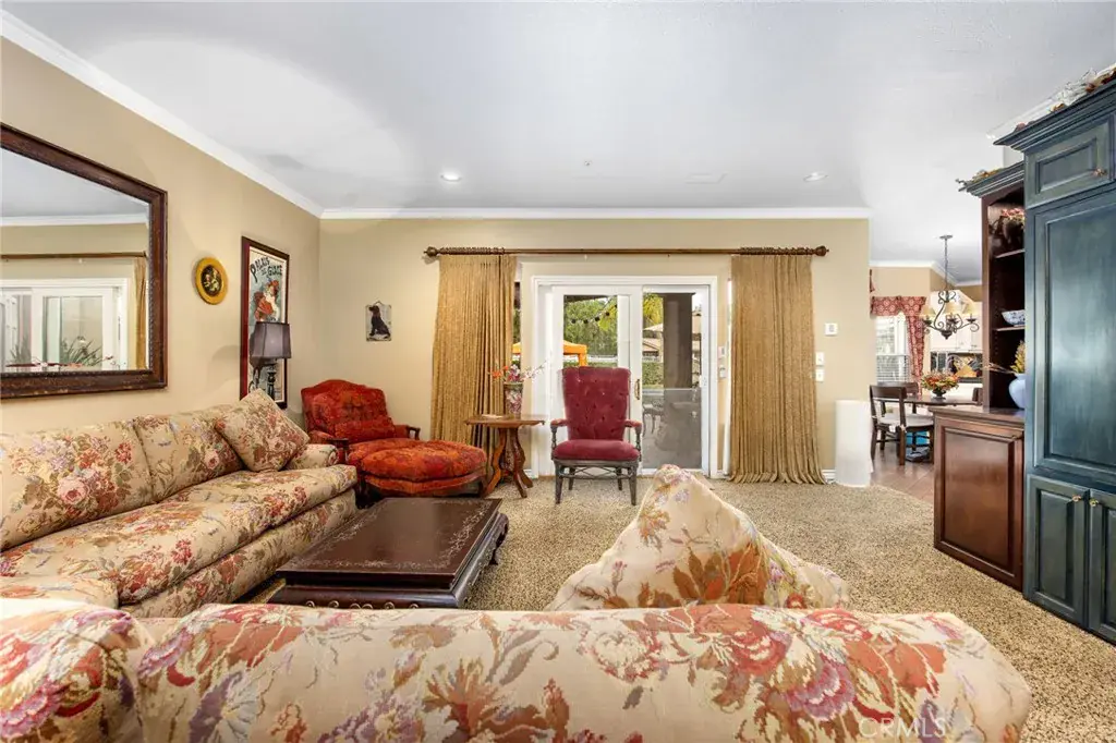 The outdoor living area features a paver-stone driveway, solar-heated pool and spa, expansive patios, plus a garden and orchard with more than fifteen mature fruit trees.