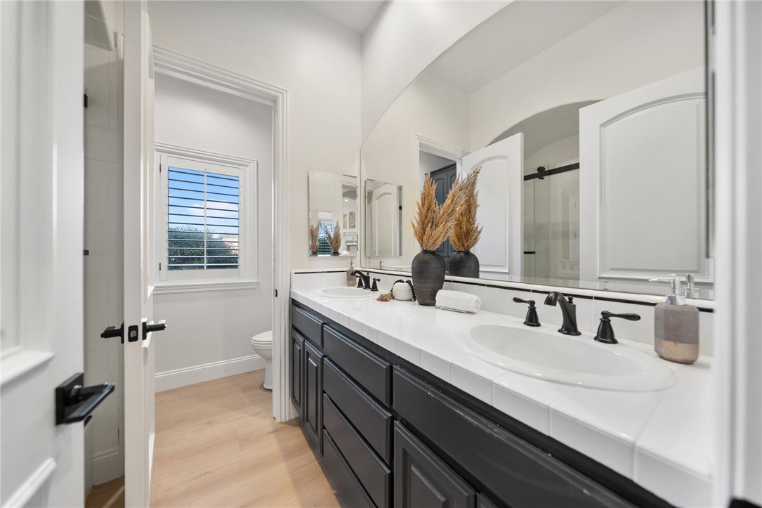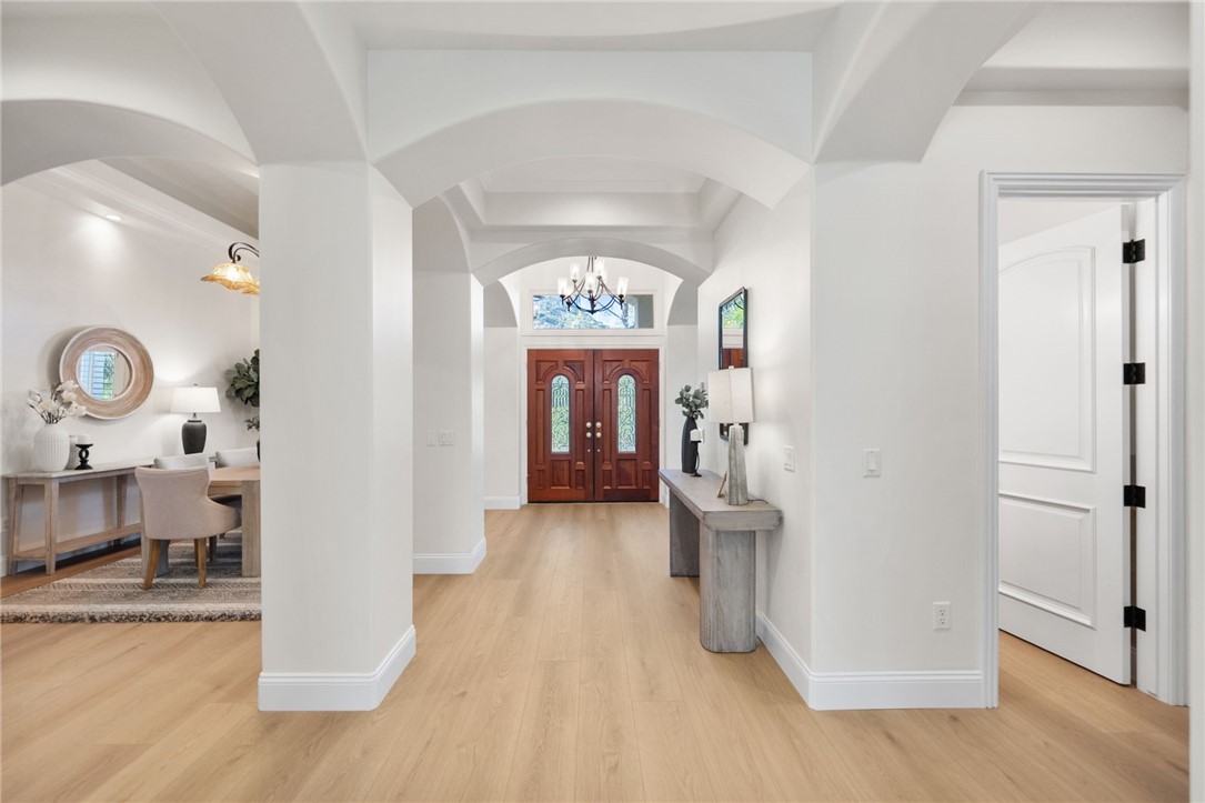 Welcome to this beautifully maintained estate nestled within the prestigious gated community of Bear Creek in Murrieta. Situated on a rare and highly desirable 0.63 acre lot in a quiet cul de sac, this property offers exceptional privacy, space, and usability perfect for both relaxing and entertaining. Spanning approximately 3,512 square feet, this thoughtfully designed home features 4 bedrooms and 3 full bathrooms with an ideal layout. Three secondary bedrooms are situated on one wing of the home, while the oversized primary suite is privately tucked away on the opposite side. The recently remodeled primary retreat is a true sanctuary, complete with a cozy fireplace, a spacious sitting area, and a luxurious bathroom featuring a standalone soaking tub, a walk in shower, dual vanities, and two large walk in closets. Inside, you’ll find soaring ceilings, plantation shutters, and brand new luxury vinyl plank flooring throughout. The home offers multiple living spaces including an oversized formal living room, a formal dining room, a welcoming family room, and a large gourmet kitchen with an island that seamlessly opens to both the family room and backyard. A casual kitchen dining area adds to the home’s functionality and charm. Step outside to your own private resort-style backyard. Designed for year-round enjoyment, it features a sparkling pool and spa with a tranquil waterfall, a putting green, a spacious grass area, and an outdoor kitchen with BBQ ideal for hosting gatherings. A covered patio provides shade and comfort, while two large side yards offer additional versatility. There’s also an outdoor shed with ample potential to be transformed into a home office, gym, or creative space. Adding to the home’s value and efficiency, the property is equipped with solar, helping to reduce energy costs while enhancing sustainability. Completing the property is an oversized 3 car garage and a lot that truly maximizes privacy and usability an uncommon find in this community. This is a rare opportunity to own a turn key home in one of Murrieta’s most sought after neighborhoods, offering space, privacy, and luxury all in one.