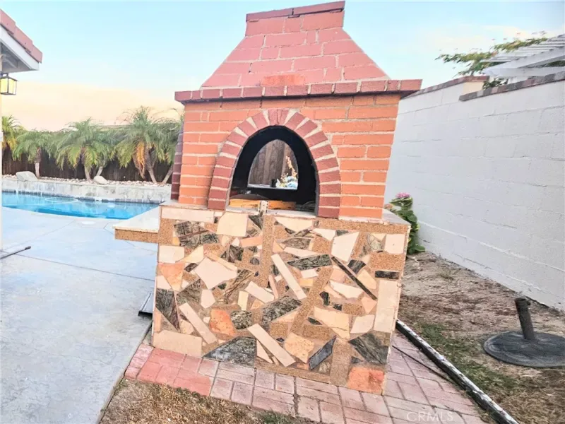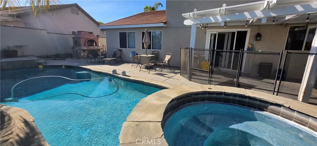 Gorgeous Pool and Spa House with outdoor Brick Oven. Enter into formal living room that has vaulted ceiling and large windows to bring California sunlight in the house. Open concept family room with kitchen that has gas fire place with stones. Recessed lighting through out. Black Granite kitchen counter top with designer back splash. Cabinet with accent glass and built in desk for your lap top. Large pantry along with large laundry room that can be converted into private office. Kitchen has all stainless steel appliance. Master bedroom upstairs with walk in closet and your back yard pool view. The other two guest rooms are spacious to accommodate queen beds. Murrieta’s highly sought after neighborhood your own private pool, and spa.