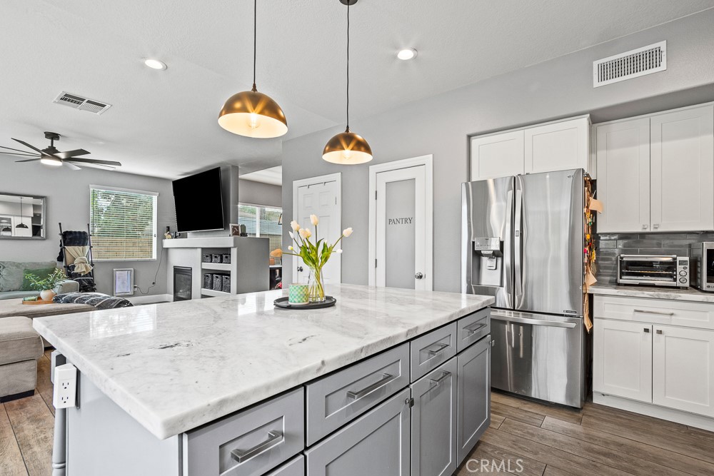 The kitchen is a true showstopper with quartz and marble countertops, a farmhouse sink, and a convenient pot filler—perfect for both everyday living and entertaining. Enjoy modern conveniences including a QuietCool whole house fan, a 6-stage alkaline reverse osmosis system, and a tankless water heater with whole-house recirculation pump.Whole house water conditioner, Energy efficiency is a bonus with 39 paid-off solar panels.