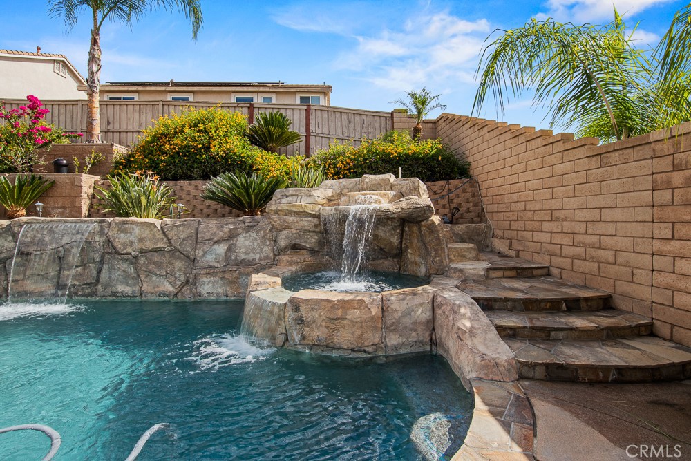 Step outside to your own private resort-style backyard, complete with a saltwater PebbleTec pool, grotto, and two waterfalls—perfect for relaxing or entertaining. Additional outdoor highlights include a fire pit with built in seating , low-maintenance landscaping, and a dedicated dog run.
