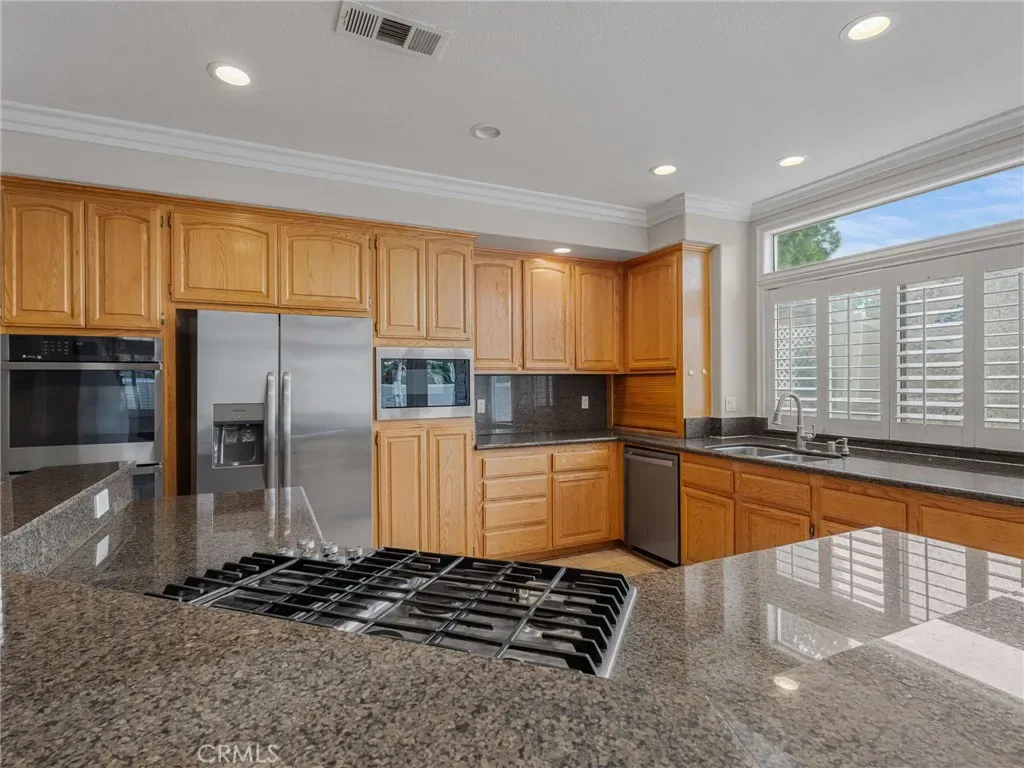 rooms, 3 full bathrooms & 3,417 sf of living space on a 7,841 sf lot. Well-kept surroundings & curb appeal with a mature landscaping & spacious 3-car garage. The formal living room offers a cozy fireplace with mirror & high ceilings. Behind the living room is a spacious dining room, family room with fire place and the open-concept kitchen layout for family gatherings. Kitchen with dark color granite countertops, wood cabinetry, DBL ovens, built-in range & large center island. Downstairs, there is a full bathroom & a room, ideal for guests, in-laws, or home office. Upstairs, the Primary room consist of bathroom includes dual sinks, a soaking tub & separate shower, his and her walking closets. Additional upstairs bedrooms are equally spacious. Backyard offers a pool and a BBQ counter with ample space for outdoor living, gardening & entertaining. This home is located within the Murrieta Valley Unified School District and quick access to both the 15 & 215 Freeways, shopping, restaurant and Temecula wineries.
