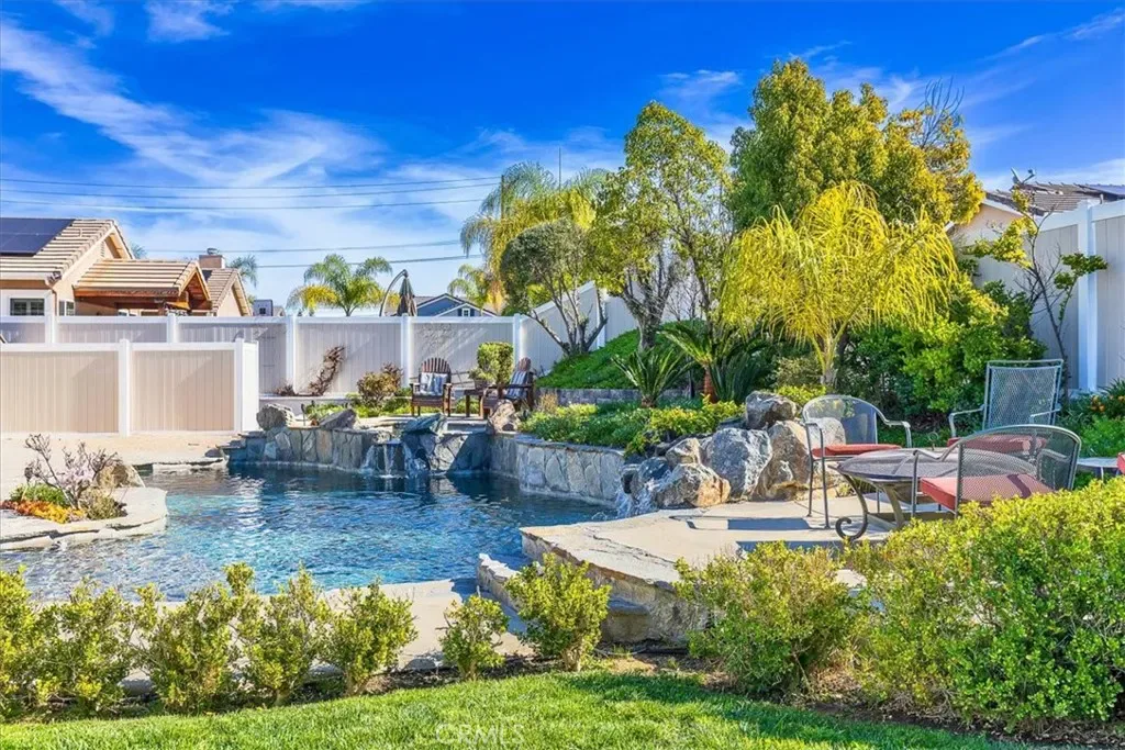 SELLERS SAY….BRING US A REASONABLE OFFER!! STUNNING SINGLE STORY***5 BEDROOM WITH 2,766 SQ FT of LIVING SPACE***POOL & SPA***FULLY OWNED SOLAR***RV PARKING*** 3 CAR GARAGE with EPOXY COATED FLOORS *** OVER 720 SFT OF RV PARKING*** located in the coveted COUNTRY GATE COMMUNITY WITH NO HOA AND LOW TAXES!! Luscious landscaping in front and back yards, built in barbeque with gas, water hookup and prep sink!! Sparkling saltwater pebble surface pool and raised spillover spa with separate rock waterfall. Sturdy 112 SFT shed offers additional convenience/storage. Wood framed Gazebo in back yard creates an inviting private space for enjoying a meal or simply relaxing! Vinyl Fencing surrounds home. Front wrap-around porch is a favorite place to unwind on the porch swing to view the gorgeous sunsets! Retractable screens on exterior doors. Upon entering the home, you are welcomed with 10′ ceilings and windows with lovely plantation shutters. Front room can be used as a separate living or formal room. Enter into a bright chef’s kitchen and dining nook adjacent with newly painted cabinets, hardware (including soft close hinges), new stainless steel 5 burner gas stove, overhead microwave and refrigerator! Granite countertops adorn island which offers ample prep space AND prep sink for those large family & friend gatherings. Separate large counter with more cabinets and drawers with pull up seating. Enjoy the custom built entertainment center and surround sound built in speakers. Raised hearth with gas fireplace sets a comfortable gathering area. Separate large dining room located off kitchen. Large Primary bedroom offers custom built in shelves with french doors accessing courtyard. Ensuite bathroom boasts newer quartz counters, dual sinks, tiled walk-in shower and tub areas. Spacious mirrored walk in closet. Four additional spacious bedrooms, each with newer ceiling fans. Laundry room contains many storage cabinets along with new utility sink. Excellent award winning schools, shopping conveniently located nearby. This home is truly a RARE FIND combining expansive living spaces, high end finishes and outdoor luxury all in one extraordinary home!!!