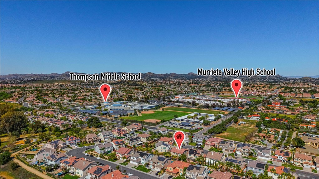 Spacious West Murrieta Retreat with Scenic Foothill Views. Nestled in a highly desirable pocket on the west side of Murrieta, this stunning 5-bedroom, 4.5-bathroom, 3-car tandem garage home offers 3,711 SqFt of luxurious living on a quiet cul-de-sac. Backs to the foothills near the Santa Rosa Plateau, it provides a serene, suburban feel while remaining close to top-rated schools including Murrieta Valley High School and Thompson Middle School, both within walking distance. Designed for both entertaining and everyday living, the home features one full bedroom and full bathroom downstairs, a gourmet kitchen with stainless steel appliances, slab granite counters, a large walk-in pantry, and a butler’s pantry. The breakfast counter bar and cozy kitchen nook open to the family room, while formal dining and living areas boast fireplaces and ample natural light with plantation shutters. Upstairs, a versatile loft is perfect for a library or TV room, framed by a gallery walkway overlooking the foyer. The oversized master suite includes a walk-in closet, separate shower, soaking tub, dual vanities, and space for a luxurious en-suite. One bedroom upstairs features it’s own private bathroom. Additional highlights include a large laundry room and built-in storage, plantation shutters, and a spacious backyard with a large side yard ideal for outdoor gatherings. Enjoy easy access to I-15 and I-215 freeways, just 15 minutes to Temecula’s wine country and Old Town, and 1–1.5 hours to San Diego or Orange County. Close to shopping, golf courses, casinos, and entertainment, this home combines quiet, established neighborhood charm with modern amenities and commuter convenience. Experience the perfect balance of comfort, elegance, and location in this exceptional Murrieta home.