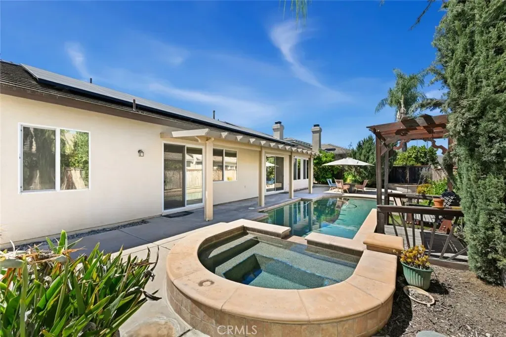 Step inside to find fresh updates throughout, including brand new luxury vinyl plank flooring and new carpet, creating a modern and inviting feel. The open and functional layout offers plenty of space for both everyday living and entertaining. Out back, enjoy your own private oasis with a sparkling pool and jacuzzi ideal for relaxing or hosting on warm Southern California days. Homes with this kind of versatility and single-story design don’t come up often. Conveniently located near top-rated schools, shopping, and dining.