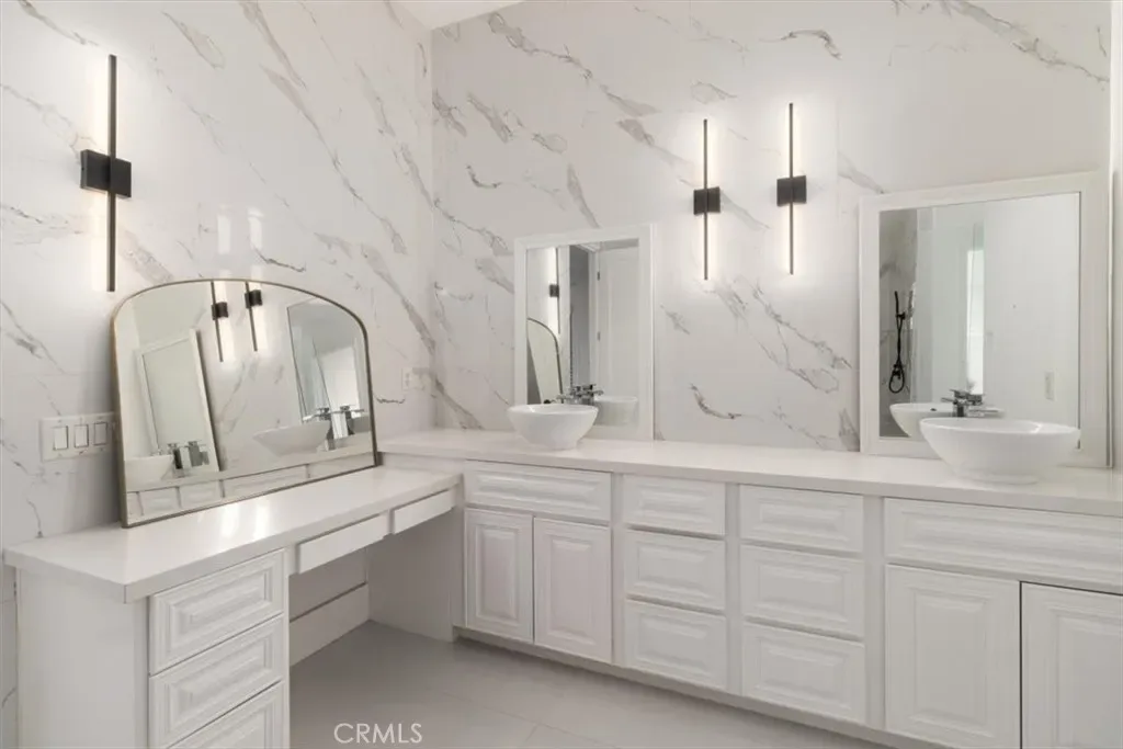 Step inside and be wowed by 48″ white marble-porcelain tile floors, dramatic black granite stairs, and high-end upgraded lighting throughout every room. The home offers 4–5 spacious bedrooms, 3 beautifully upgraded bathrooms, and a full-room walk-in closet in the primary suite—an absolute dream for any fashion enthusiast. The primary bathroom features a huge two-person shower and elegant double sinks.