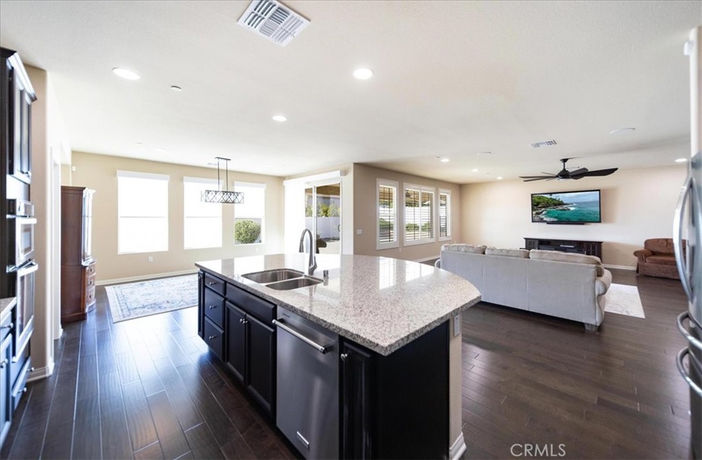 Highly sought after single story home, the “Carnaby” model in the Meadowlark Community of homes, nestled in a quiet cul-de-sac in the heart of Murrieta, CA — where space, comfort, and luxury appointments come together beautifully with No HOA! This expansive residence offers an exceptional sense of openness from the moment you step inside. Designed with both everyday living and entertaining in mind, the thoughtfully laid-out floor plan features generous living areas, high ceilings, and abundant natural light that creates an airy, inviting atmosphere throughout the home. The spacious kitchen is a dream to cook in and flows seamlessly into the great room and dining area, providing the perfect setting for gatherings large or small. The oversized master bedroom offers comfort and privacy, while the other two bedrooms on the opposite end of the home serves as a peaceful retreat for family and guests. Situated on a large lot (11,700+ sq. ft), this property truly stands out. The low maintenance backyard allows you time to focus on entertaining or personal interests. With room to play, relax, and grow, this outdoor setting is a rare find. On top of that, there’s Solar that’s paid off with an EV charging station in the epoxy coated garage. Potential room for RV parking on the East side of home. Located in a desirable neighborhood close to top-rated schools, parks, wine country, shopping, regional French Valley airport, and convenient freeway access, this property offers the perfect balance of tranquility, livability and accessibility. If you’ve been searching for a home that combines generous interior living space with a substantial lot in one of Southern California’s most desirable communities, Murrieta, this is the one!!