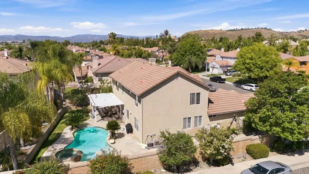 Don’t miss the opportunity to own this beautiful and spacious Murrieta home situated on a desirable corner lot with drive-in gated RV parking, a sparkling pool, and relaxing jacuzzi. Perfect for entertaining family and friends! This home features a convenient guest bedroom and full bathroom on the first floor, ideal for visitors or multigenerational living. Upstairs you’ll find a large loft that can easily be transformed into a third family room. With no HOA and no Mello-Roos, this property offers flexibility and long-term value. Make this home the place you look forward to enjoying a peaceful and quiet life in a safe neighborhood. Perfect for retired individuals or families who love to entertain in the comfort of a large space. Bring your vision to life! Schedule a showing today! Buyer and buyer’s agent to verify all information related to the property.
