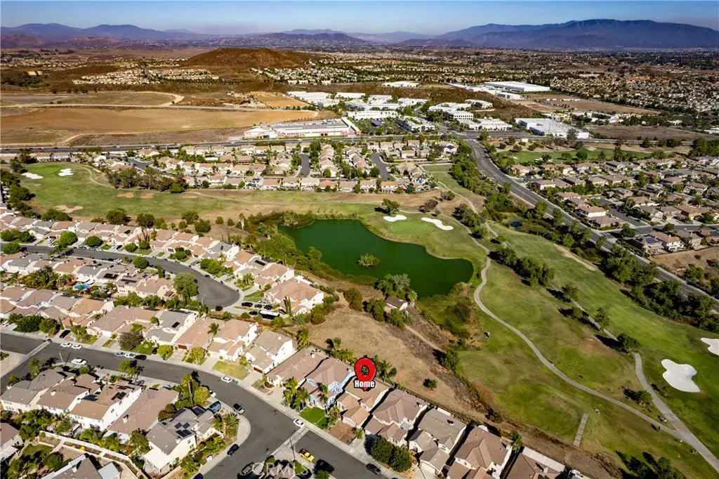 Perfectly nestled in “The Greens” community on the Golf Course at Rancho California, this turnkey 2720 sf, 4 bedroom, 3 full bath exclusive hideaway exudes peaceful sanctuary vibes while overlooking the 10th lakeside fairway oasis and tee, and 9th fairway and green. Breathtaking panoramic sunrise and sunset views stretching all the way to sky blue hills cascading across the horizon present that rarest epitome of “serenity” living right in the heart of the Murrieta Temecula corridor. Open concept floor plan. Recently painted inside and out. New privacy vinyl fencing. Outdoor front courtyard. Low maintenance landscaping. High ceilings and recessed lighting. Plantation shutters. Updated bathrooms. Granite kitchen counters. Large island with sink. Gas stove. Double ovens. Gas fireplace and surround sound speakers in family room. Downstairs full bath and bonus room which can be used as an office, gym, or 5th bedroom. Loft upstairs can be used as a work or study area. Master ensuite includes a spacious private deck, walk-in closet, dual sinks, separate tub and shower. Ceiling fans and new carpet throughout. Dual zone heating and air conditioning. Laundry room on main floor. Covered backyard patio. Three car garage. Golf course, mountain and city views. No rear neighbors. NO HOA. Low tax rate. Located on a quiet cul-de-sac within minutes to Downtown Murrieta, Old Town Temecula, wineries, breweries, shopping centers, and easy freeway access to Southern California hotspots, such as San Diego, Orange County, and Los Angeles.
