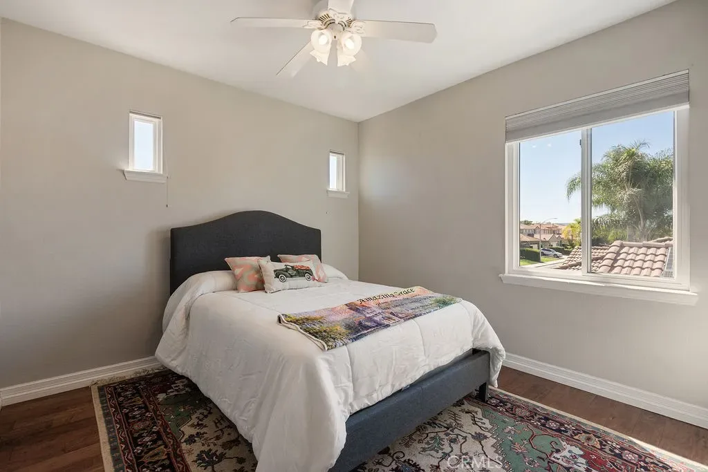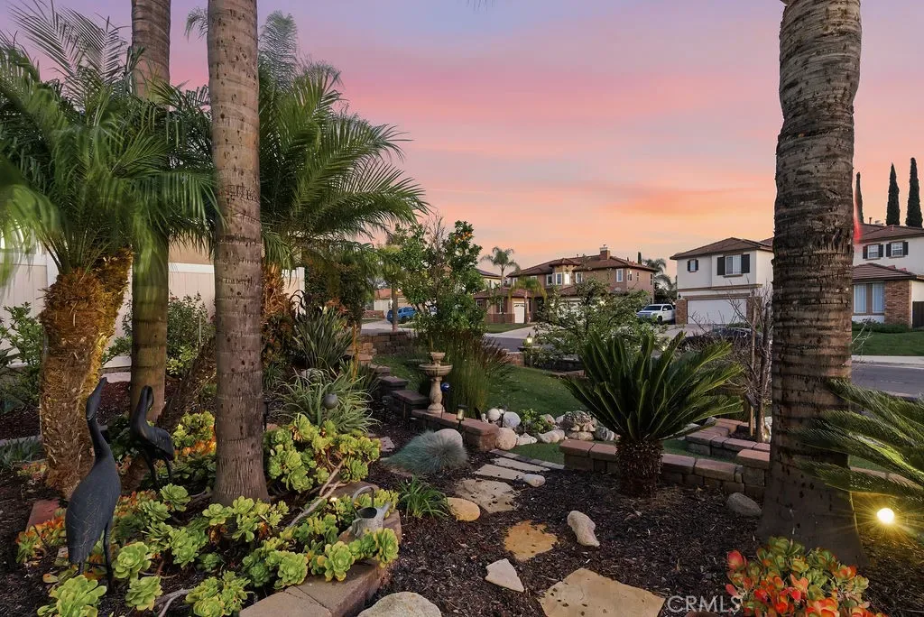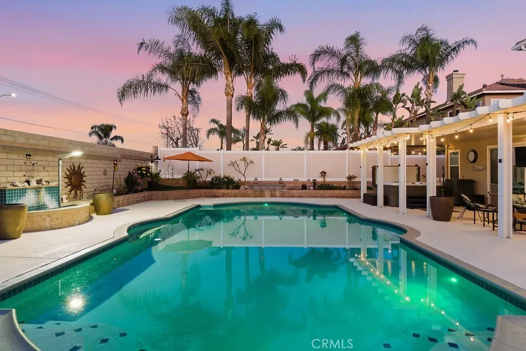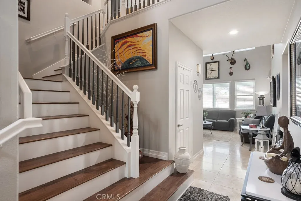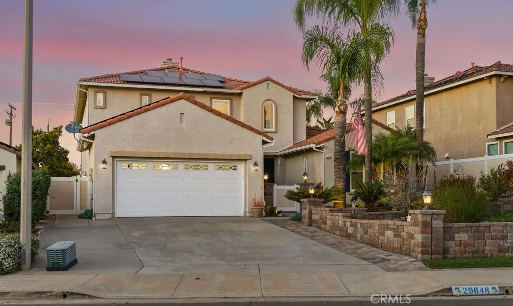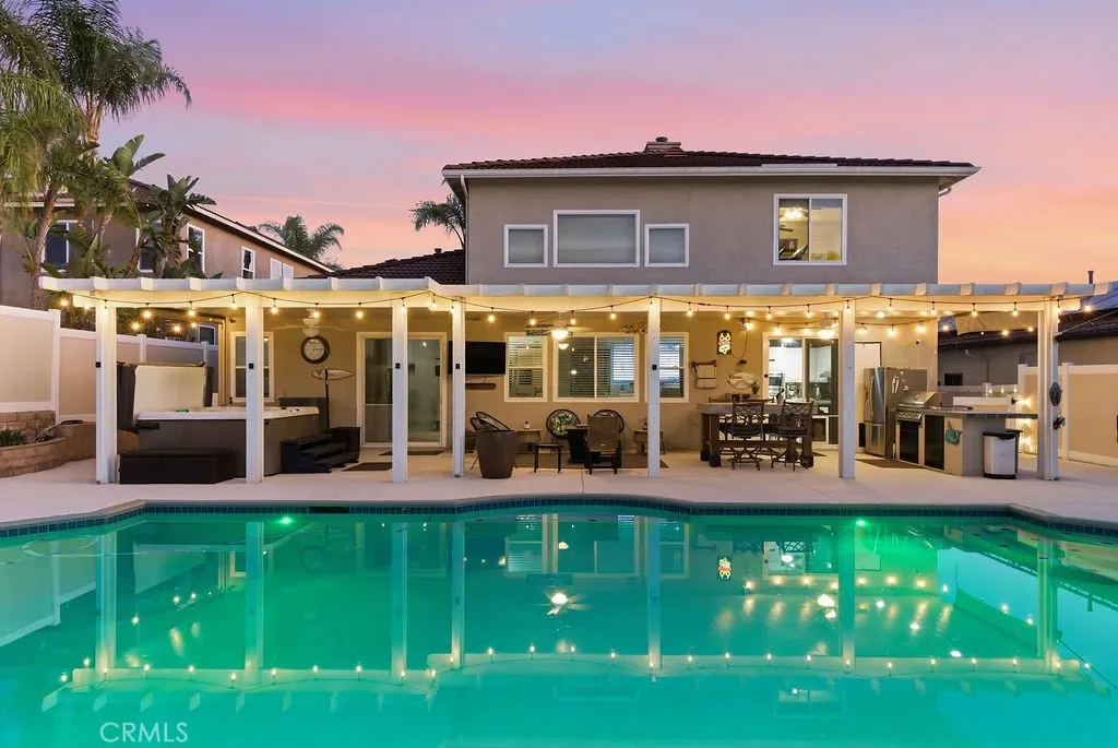 Absolutely stunning property in highly sought after community of The Greens in Murrieta. This 5 bedroom pool home is a MUST SEE! From the moment you enter the home, you are welcomed by a formal living room space that is currently used as an office and a formal dining room. The heart of the home is where the kitchen and family room meet with soaring ceilings with loads of windows allowing all the natural sunlight to shine in. Gorgeous custom tile floors throughout the main floor. The gourmet kitchen has bright white cabinetry with underlighting, custom counters and backsplash, and stainless appliances. The first floor of this wonderful home boasts the Primary Suite with a fully remodeled custom primary bath and an additional secondary bedroom with private bath. There are three additional spacious bedrooms on the second floor, all with ceiling fans and wood flooring. The backyard is an entertainers paradise with a huge covered patio overlooking a sparkling in-ground pool and above ground spa. BBQ island is there for all of your culinary delights. All of this along with a list of upgrades: PAID solar with 3 batteries, upgraded windows, freshly painted deck, remodeled front landscaping, new water heater, new HVAC system, whole house fan, new vinyl fencing, fruit trees, new pool pump, new garage door opener with camera. Truly a dream come true.