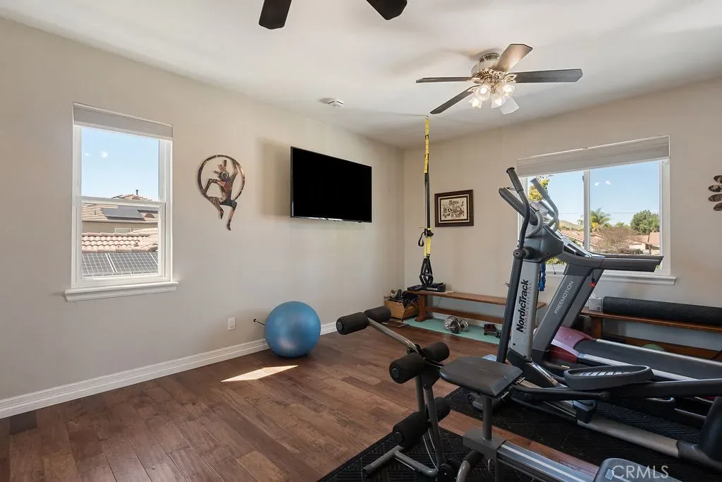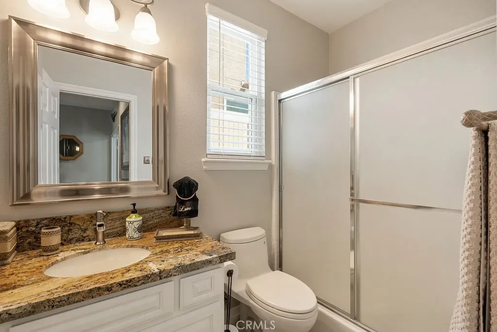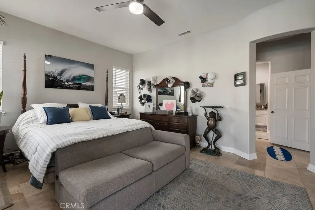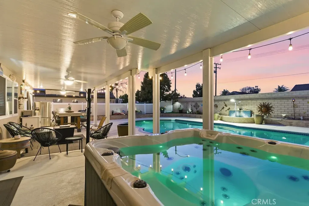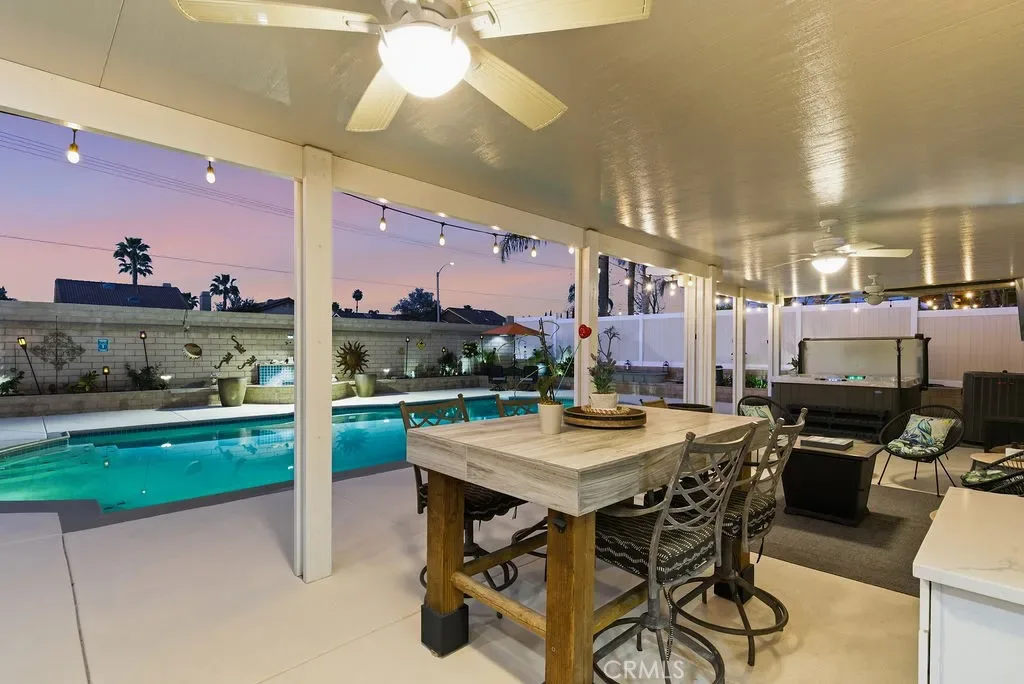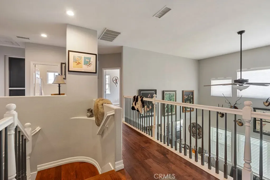 Absolutely stunning property in highly sought after community of The Greens in Murrieta. This 5 bedroom pool home is a MUST SEE! From the moment you enter the home, you are welcomed by a formal living room space that is currently used as an office and a formal dining room. The heart of the home is where the kitchen and family room meet with soaring ceilings with loads of windows allowing all the natural sunlight to shine in. Gorgeous custom tile floors throughout the main floor. The gourmet kitchen has bright white cabinetry with underlighting, custom counters and backsplash, and stainless appliances. The first floor of this wonderful home boasts the Primary Suite with a fully remodeled custom primary bath and an additional secondary bedroom with private bath. There are three additional spacious bedrooms on the second floor, all with ceiling fans and wood flooring. The backyard is an entertainers paradise with a huge covered patio overlooking a sparkling in-ground pool and above ground spa. BBQ island is there for all of your culinary delights. All of this along with a list of upgrades: PAID solar with 3 batteries, upgraded windows, freshly painted deck, remodeled front landscaping, new water heater, new HVAC system, whole house fan, new vinyl fencing, fruit trees, new pool pump, new garage door opener with camera. Truly a dream come true.