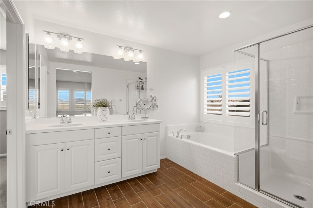 Inside, the home is equally impressive with 9-foot ceilings, durable and stylish wood-look plank tile flooring, plantation shutters, and a spacious loft—perfect for a second living area, office, or playroom. A standout feature is the oversized L-shaped walk-in closet—offering the kind of space rarely found, perfect for a full wardrobe, seasonal storage, or a custom dressing retreat. If you’re looking for upgrades…this is the one. Every inch of this home reflects quality, with countless upgrades beyond what can be listed here. The home has been meticulously maintained and is truly move-in ready.