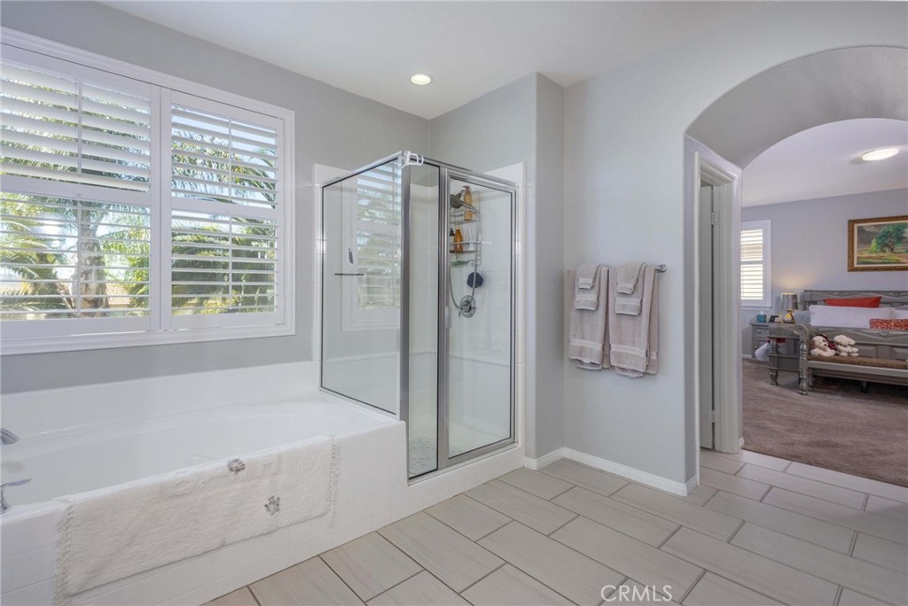 Immaculate, move-in ready home with exceptional upgrades and curb appeal! The freshly painted exterior, well-manicured landscaping, and private backyard with patio and included gazebo create the perfect outdoor retreat. Inside, enjoy plantation shutters throughout and durable, no-maintenance tile flooring. The flexible floor plan features an office and formal dining area at entry, with a wood-finished barn door that allows the front space to be closed off for added privacy. The open-concept great room seamlessly connects the fully equipped kitchen, dining area and living room with a cozy fireplace. A main-level, multi-generational suite includes a studio bedroom, compact kitchen, and full bath-ideal for guests or extended family. The two car garage is equipped with an electric vehicle charging station. Upstairs offers a spacious family/media room, large laundry room, a beautiful primary suite, three additional bedrooms (one with a private full bath) and a full double sink hall bathroom to accommodate the two additional bedrooms. Located in the desirable Spencer Crossing community with resort-style amenities, including a sports park, junior Olympic pool, spa, and clubhouse.