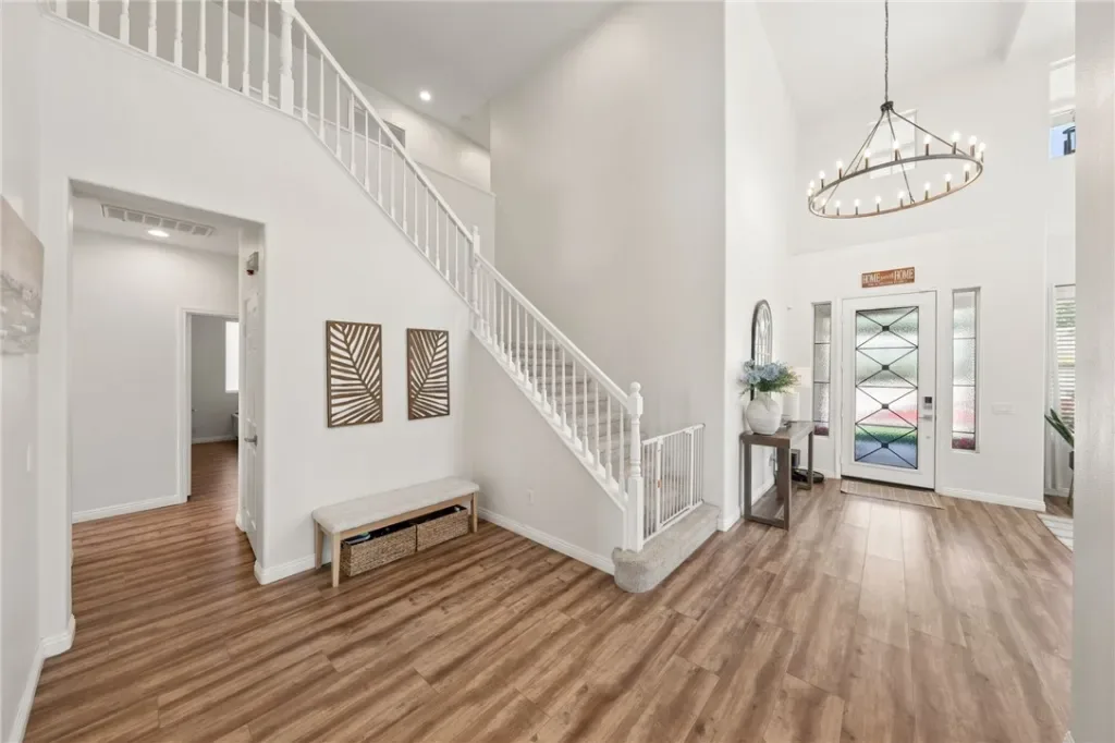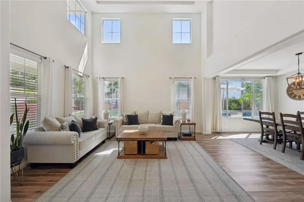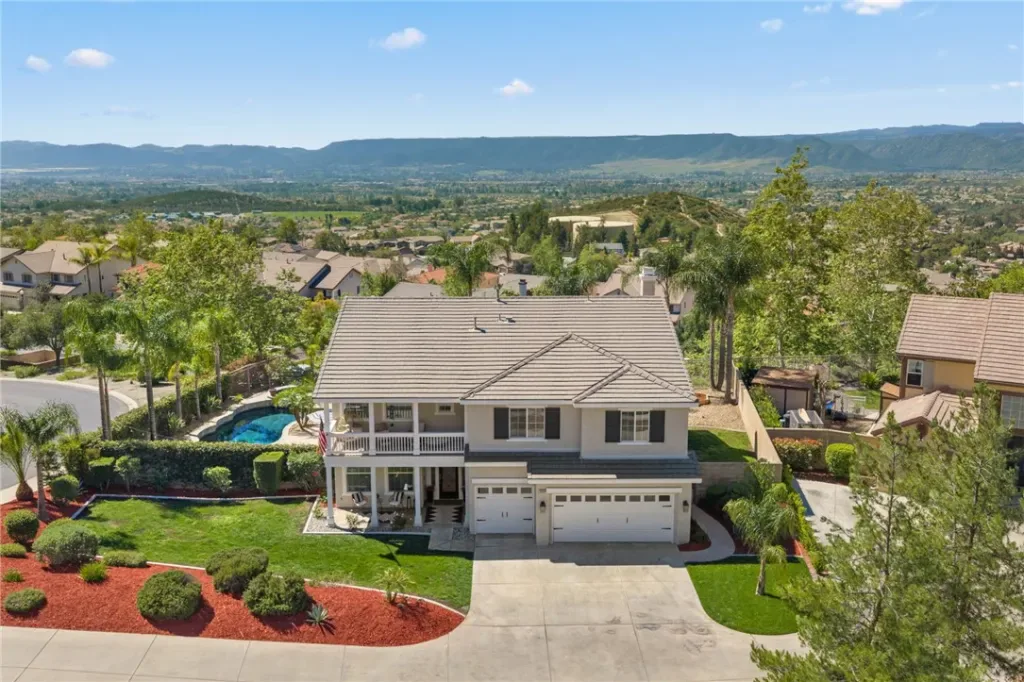 *PRIVATE POOL & SPA * STUNNING VIEWS * PRIVACY * LARGE LOT * GUARD-GATED COMMUNITY Set near the highest point in Greer Ranch on an expansive 11,761 sq ft lot, this exceptional 3,806 sq ft home showcases sweeping views of the Santa Rosa Plateau & Temecula Valley, with only one home above it. A long driveway, new landscaping, freshly painted exterior, updated wrought-iron glass front door & 3 car garage create a striking first impression. Inside, soaring 2 story ceilings, luxury vinyl plank floors & neutral interior paint set the stage, while the formal living & dining rooms are filled with natural light from expansive windows. The kitchen features granite counters, white cabinetry, stainless steel appliances & a walk-in pantry, opening to a beautifully updated farmhouse-style family room with shiplap accent wall, remodeled fireplace with wood mantle, custom built-in with floating shelves, recessed lighting, ceiling fan & dry bar with tile backsplash & beverage fridge. A wall-to-wall roll-up screen with hidden projector adds a fun touch for movie nights. The main floor offers a bedroom with ceiling fan & walk-in closet & includes an attached bath with walk-in shower, ideal for guests or multi-gen living, along with an additional upgraded 1/2 bath & laundry room with sink & abundant cabinetry off the 3 car garage with epoxy floors & hi-loft storage. Upstairs offers 3 secondary bedrooms (2 of them a Jack-n Jill), 2 baths & a large bonus room with wood floors, barnwood door entry & balcony. Privately situated away from the secondary bedrooms, the primary suite features double door entry, its own private balcony with stunning views, jetted tub, walk-in shower, make-up vanity & large walk-in closet. The backyard is a private haven with a saltwater pool & spa with fire bowls, grassy area, horseshoe pit & patio spaces to relax or entertain. Additional features include a Quiet Cool whole house fan, attic fan, NEST cameras & ADT pool security system. Located within the guard-gated Greer Ranch community with 24 hr security, scenic hiking & biking trails, parks, community pool & spa, and year-round neighborhood events. Enjoy convenient access to the 215 & 15 freeways, nearby shopping & dining, Old Town Temecula, Temecula wineries & the Promenade Mall, all w/in the highly regarded Murrieta school district. Don’t miss this rare opportunity to own a pool & view home that blends privacy, space & everyday luxury.