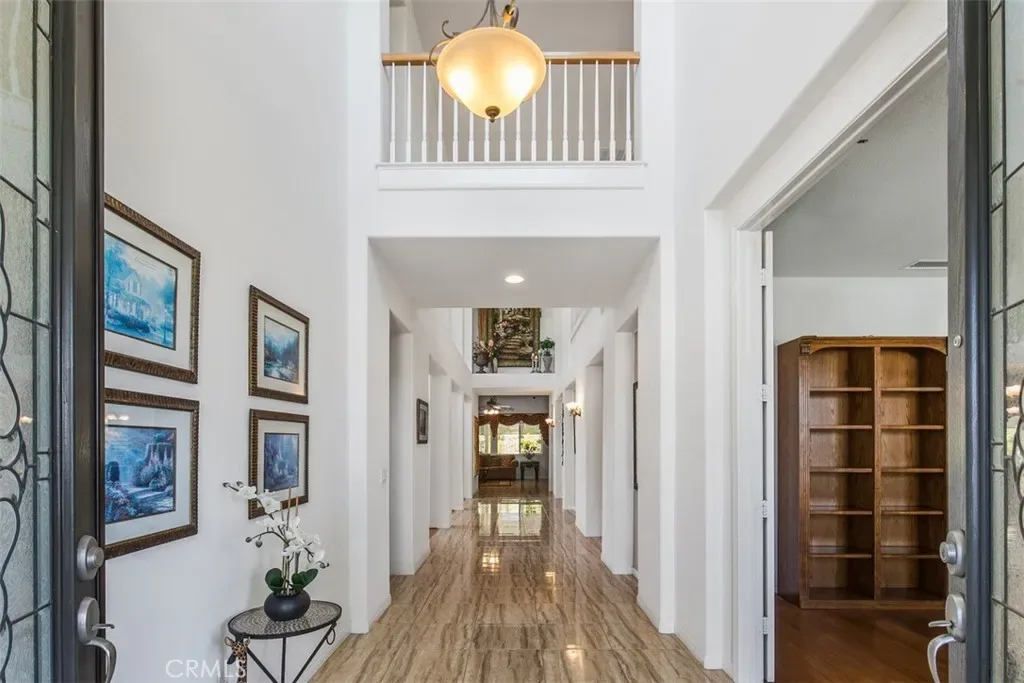 Outstanding 4 Bedroom Home plus Office with 3 and half bath features Cathedral Ceilings, Elegant flooring,and an abundance of natural light. Both the Living Room and Dining Rooms overlook an alluring courtyard. The Kitchen was recently remodeled with New Stainless Steel Appliances and Granite Countertops. The open-concept kitchen overlooks the Family room, providing an ideal space for gatherings. The Large Master with en suite bath, his and her closets, vanity area and large sunken tub are all conveniently located on the first floor. Additionally, the property boasts Lush Landscaping with plenty of room for a pool. This home is located in the Exclusive Gated Community of Murrieta Heights. Conveniently located between the 15 and 215 Freeways with Award Winning Schools. Don’t Miss an Opportunity to See this Amazing Property.