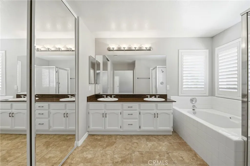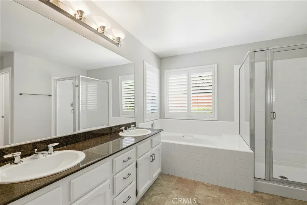 Welcome to Murrieta’s most sought-after neighborhood in the Montserrat community!! This executive “Madrid” floor plan rarely ever comes on the market. Freshly painted inside and out! Upon entrance through the double doors, you will notice the cathedral ceilings, grand fireplace, and open layout in the spacious formal living and dining room. The Double staircases and designer fixtures, including custom shutters throughout, add to the unique architecture of this home. Updated kitchen with granite countertops. The family room has a built-in niche, cabinet, and cozy fireplace. Another huge plus is that all the bedrooms are OVERSIZED. Conveniently located downstairs is a large bedroom and a full bathroom. Upstairs, you will find an additional four very large bedrooms. This home also has a separate laundry room with a sink and cabinetry for storage, as well as a three-car garage. The upstairs primary bedroom features an ensuite bathroom with a double vanity, a separate soaking tub and shower, and a walk-in closet. Private backyard features a heated, sparkling pool and spa. The low-maintenance hillside landscaping has also been graded with drip irrigation and a variety of fruit trees, and also provides the home with additional privacy. Dual HVAC units. Custom rain gutters. Washer/dryer stay! Situated in one of the lowest tax areas with no HOA, you are centrally located and close to an abundance of shopping and restaurants, easy commuter access to I-15 and I-215 freeways, Loma Linda Medical Center, and within the award-winning Murrieta school district! Costco, Super Target, and Starbucks are just a few minutes away! Don’t miss out on one of the most pristine neighborhoods with pride of ownership in Murrieta.