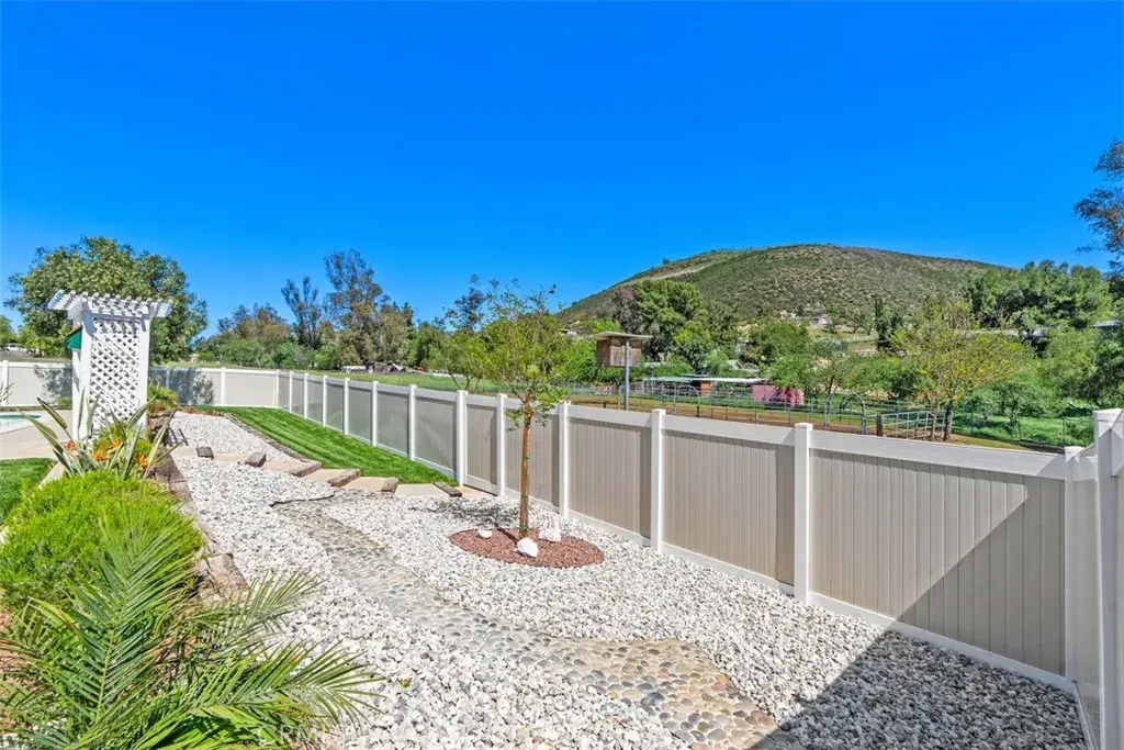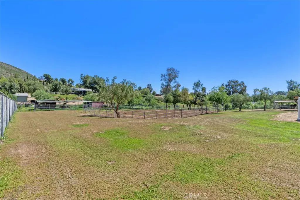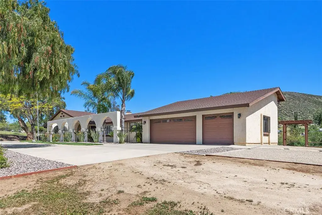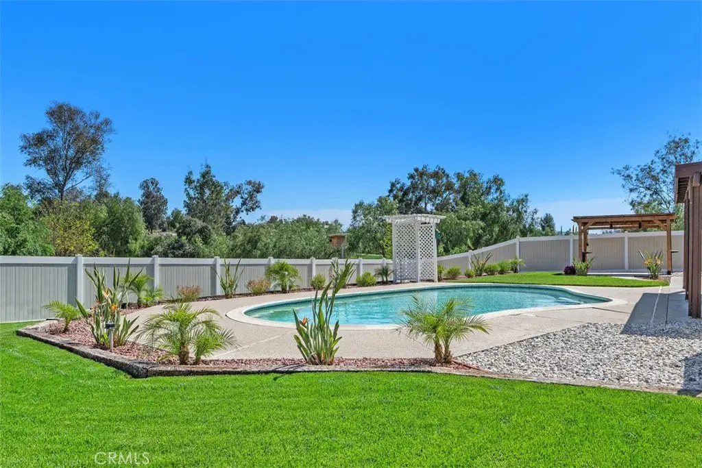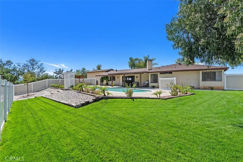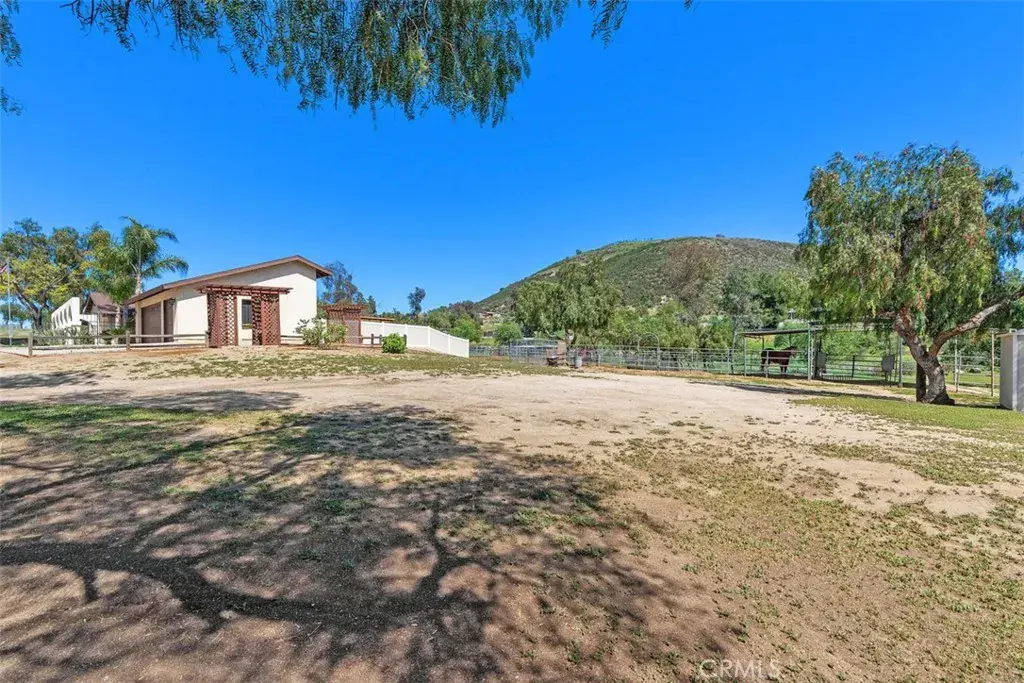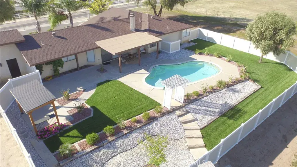 Welcome to this Murrieta estate—an inviting, custom single-story oasis set on 3.26 acres of well-maintained land where natural beauty, usable space, and everyday comfort come together. Nicely remodeled, this home blends modern luxury with the calm of country living, creating a lifestyle designed for both relaxation and recreation. Inside, the open-concept layout is filled with warmth and character, highlighted by a striking tongue-and-groove wood beam ceiling and a dramatic floor-to-ceiling stone fireplace. Thoughtful details continue throughout, including bench window seating, brand-new stainless steel appliances, granite countertops, and high-end finishes. Fresh paint and upgrades shine with luxury vinyl flooring, soft carpet in the bedrooms, and new baseboards throughout. The home offers 3 spacious bedrooms and 2.5 updated bathrooms—with oversized bedrooms, a luxurious primary suite, and a generous walk-in closet. Both full bathrooms feature double-sink vanities. New window coverings throughout complete the clean, finished look. Step outside and fall in love with the private backyard paradise, professionally landscaped. Take a dip in the swimming pool, unwind beneath the covered patio, or fire up a grill under the stylish cabana—an ideal setting for gathering with friends and family. The backyard is enclosed with vinyl fencing, creating a safe, private outdoor sanctuary. Beyond that, the entire 3.26-acre property is surrounded by secure chain-link fencing, offering peace of mind and plenty of room for RVs, boats, trailers, and recreational toys. A three-car garage and storage shed add convenience and flexibility. Equestrian enthusiasts will appreciate the riding arena and pipe corrals, with ample space for horses and potential to expand. Adding to the property’s charm is a seasonal creek meandering through the grounds, complete with a bridge crossing, and framed by mature walnut, pepper, and eucalyptus trees creating a tranquil, shaded setting. Landscaping is supported by a water-efficient drip system, including an automatic setup for the yards. Ideally located close to parks and within the highly-rated Murrieta Valley Unified School District. This property also offers outstanding practical advantages: ADU potential, service by a private well with an optional city water connection available, and close proximity to shopping, restaurants, and hospitals. This Murrieta gem truly has it all—space, style, privacy, and a setting you’ll love coming home to.