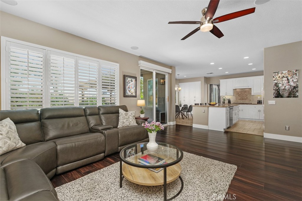 Welcome to this Impressive west Murrieta home located in the highly sought-after Copper Canyon neighborhood. Run don’t walk as homes in this area do NOT come along very often! ~STUNNING VIEWS~NO HOA~LOW TAXES & UPGRADES GALORE! Featuring 2938 asf., 4 bedrooms, 3 baths, formal living & dining, Chef’s kitchen open to family room with granite slab counter tops, tile backsplash, center island with stainless steel farm sink and dining counter, dual oven/microwave combo, warming drawer, 5 burner cook top, dishwasher, upgraded cabinetry with under cabinet lighting, plenty of counter space and spacious dining area. The open family room with fireplace and ceiling fan has direct access to the backyard. There is one bedroom & bathroom downstairs which is perfect for guests or in-laws. The upstairs offers a generously sized loft with built-in shelves and ceiling fan. The two additional secondary bedrooms are complimented with ceiling fans and well sized closets. The primary suite offers beautiful views, ceiling fan, walk-in closet, dual sinks, soaking tub, walk-in shower and linen closet. The backyard offers two garden area’s with grape vines, raspberries & strawberries, lemon, lime, orange & grapefruit tree’s, multiple walking paths, pergola, propane fire pit, bird bath, sitting area and a variety of luxurious plants & tree’s. Extensive upgrades and improvements over the past two years include fresh interior and exterior paint, enhanced front yard lighting, professionally designed Beautiful drought-tolerant landscaping with custom rock scaping in the front and backyard, luxury vinyl plank flooring, premium carpet, three designer chandeliers, designer ceiling fan with lighting, a new refrigerator and elegant 5-inch baseboards throughout the downstairs with the exception of the kitchen. The garage features an EV charger and is configured as a two-car garage, with the third-car tandem space thoughtfully converted into a studio complete with a ceiling fan and sliding doors that open to the backyard. This versatile area can easily be restored to a three-car tandem garage or repurposed as an ADU, home gym or private office. Perfect Cul-De-Sac location within walking distance to top-rated Cole Canyon Elementary, Dog Park, Family/Kids Parks & The Santa Rosa Plateau Hiking Trails. A definite must see! Be sure to schedule your private showing today! Please note -The video will be available in a few days. Thank you visiting 38220 Calle Cipres!