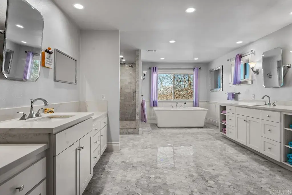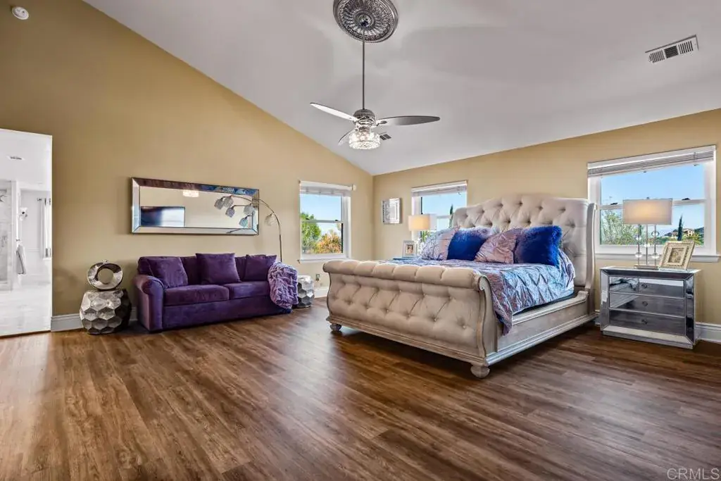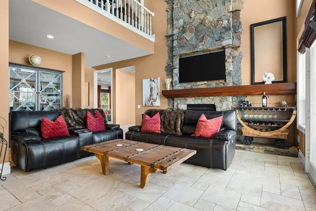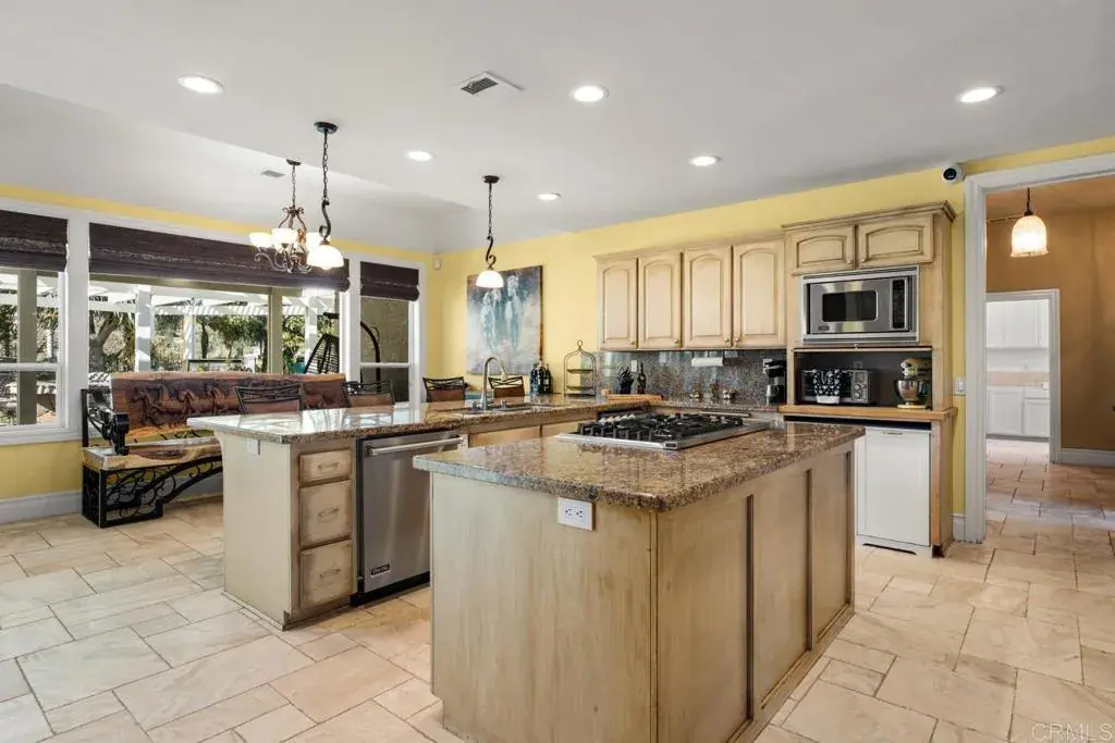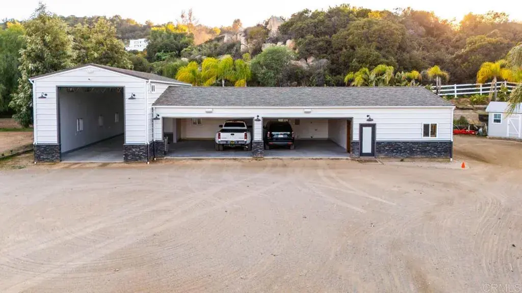 10 Acre estate in exclusive La Cresta. HUGE RENTAL INCOME opportunity. Gorgeous views. Secluded and private, with 2 Separate Parcels, This luxury property includes a Principal Residence of 5794 sq ft, on 2 levels with 25′ vaulted ceilings and an open air floor plan. Limestone tile floors, aged wood and no carpeting! Heavy insulation makes this energy efficient home warm in winter and cool in the summer. Sliding doors open to a huge backyard with beach walk-in swimming pool. The pool is accompanied by a hot tub adjoined across a waterfall, and an adjacent firepit for cozy evening gatherings. Large outdoor BBQ pavilion and sitting areas, across a grass lawn, rich with palm trees, and plenty of shade for those not willing to brave the direct sun on the pool deck! A craft kitchen includes solid granite countertops, wood cabinets, and a suite of Viking appliances and SubZero commercial sized fridge, with 2 dishwashers for parties and events. A “mud room” full of cabinetry, adjoins the kitchen, garage, and laundry room for convenience, and easy access from the side entry or garage entry. The first floor offers an open-air living room with grand fireplace wall, french doors, kitchen, mud room, guest bath, large laundry room, living room, formal dining room, grand foyer, office with french doors which can be converted to a den or bedroom, AND a full apartment with it’s own private entry. The 1000 square foot apartment features a full bath with custom tile floors and tile bath, solid wood flooring, a bedroom, dining area, full kitchen, and living room. Excellent for mother-in-law quarters or a rental opportunity. 2nd level features easy-to-clean laminate flooring, Primary suite including vaulted ceiling, 2 separate full bathrooms: One with bathroom walk-in closet and full shower, other features a giant walk in closet, sitting area, grand tub with separate shower, and private toilet and bidet, 3 sinks. The opposing wing features 2 bedrooms with large closets in each, full bath with dual sinks, and a huge den / playroom, which can easily be converted to a second master suite. This room also features a walk-in closet. The attached garage features cabinetry, and room for 2 cars. There is a detached RV garage spanning 2800 square feet, with 3 car bays and one vaulted RV bay. This fabulous garage is of Steel construction, insulated, custom glass doors, custom fans, mini splits, 6 inch concrete pad,and it’s own apartment complete with: Custom cabinets, granite counters, concrete tile floors, custom shutters, custom full bath with granite shower, bidet toilet and urinal, as well as private entry in the bathroom. This garage apartment is also fully loaded with every tech feature imaginable and an amazing built in sound system for a fantastic audio visual experience. The Ultimate ‘man cave’. Adjacent to the huge RV garage / apartment is a ‘barndominium’. The gorgeous, custom casita is perfect for rental, or family. At approximately 1400 square feet, vaulted ceiling with open beams, this casita offers 2 bedrooms, 2 baths, a custom kitchen with granite counters, 2 entries, french doors off the dining room, and a full laundry room with appliances and full sink and cabinetry. Extremely energy efficient construction with lots of cheerful natural lighting. The property offers perimeter fencing. The main entry has an electric gate, with a swing barn gate at the rear entry, and 3 other swing gate entries around the property as well as a foot gate to the main road. Equestrian area includes 2 large corrals, with 3 enclosed shelters. 3″ water lines with fire hose attachments. Flat, sanded area for arena. 2 tack sheds. 2 Seetrains. Add’l features include a new camera system, audio visual cabling in each room. A multi-Zoned sprinkler system with separate shut off valves. ** Information per Seller. Buyer to verify. SELLER TO OBTAIN ACCEPTABLE REPLACEMENT PROPERTY (Identified).
