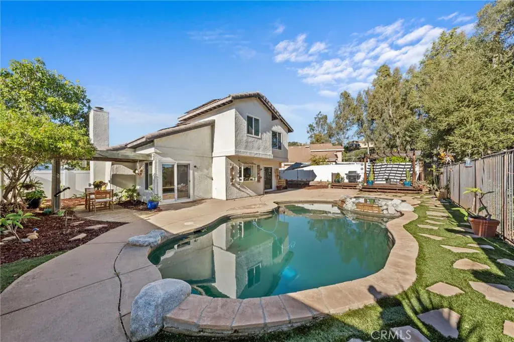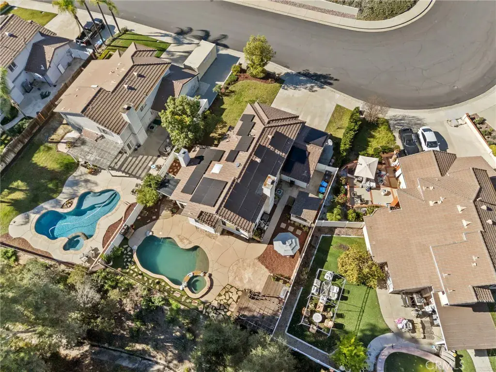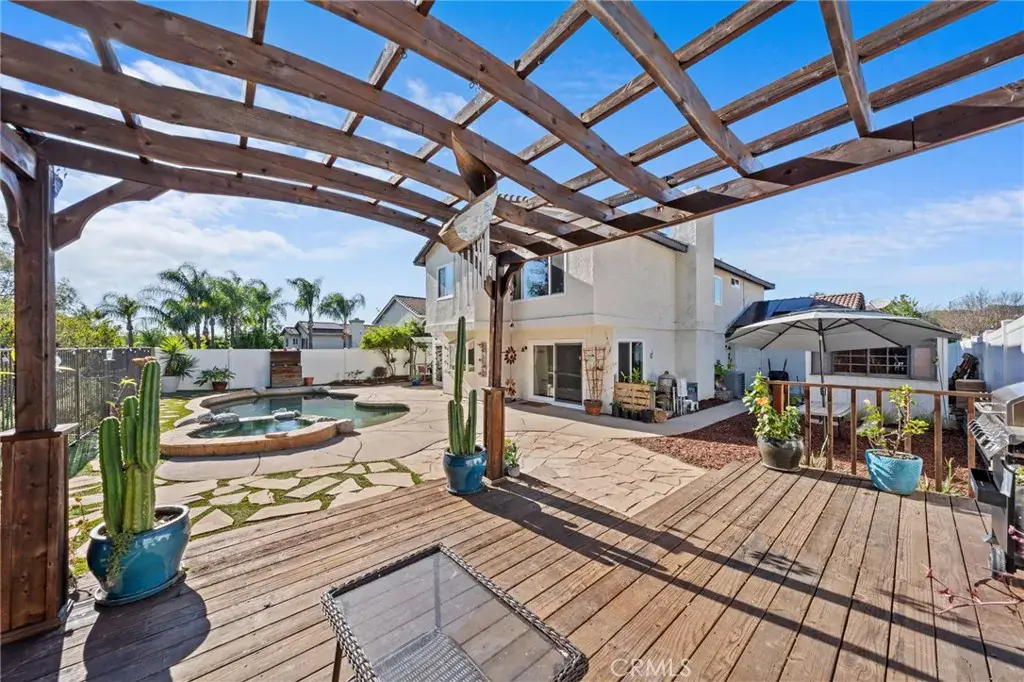 Beautiful Murrieta Pool Home with Solar! Welcome to 39440 Countryside Ln. This highly upgraded home really has it all! Wonderful layout, updated and upgraded inside and out, fresh paint, professionally steamed carpet, solar, along with low taxes and no HOA make this one of the best values on the market. Arriving, you’ll immediately appreciate the curb appeal this home boasts, from the 3 car garage to the large driveway along with ample street parking. The large, manicured front yard is a tranquil sight to welcome you home. Stepping inside, you will find a turnkey home that has all the modern and style updates you’d expect, such as dual pane windows, fresh paint, professionally steamed carpet, tile and manufactured wood floors and updated kitchen and baths, all wrapped in a familiar and reliable floor plan that complements any furniture arrangement. Dual fireplace living areas downstairs maximize the ambiance of the floor plan by offering various furniture arrangements at your imagination’s disposal. Variety like this makes it a wonderful place to host gatherings, as these two spaces are centered by the renewed kitchen, which boasts plenty of counter and storage space, built in wine fridge, stainless steel appliances, farmhouse sink, bay window, accent down lighting trimmed by shiplap accent and a large pantry. Upstairs, you’ll find all four bedrooms are a wonderful size, featuring ceiling fans and large closets able to accommodate any bedroom set. However the true star of the show is the primary suite, which is above average by any measure and features a fully upgraded master bathroom, dual sink vanity, accent lighting, and a massive walk-in shower trimmed in oversized staggered tile. Heading downstairs and outside, you’ll find the backyard is a true oasis, the pool is as stylish as it is inviting with pebble tec finish, sandstone coping, built in rock features, new pool pump with 3 year warranty, a stepped spa and stylized surrounding concrete. New vinyl fencing, a large gazebo with deck and a shade area for lounging, large storage shed on the side yard. This home is centrally located between the 15 and 215 freeways, which makes commuting a breeze. Local shopping such as Costco and Target, schools, and restaurants are all a few minutes’ drive away but far enough that you don’t feel the hustle and bustle of the traffic getting home. If you want Murrieta living at its very best, don’t wait any longer and schedule your viewing today!
