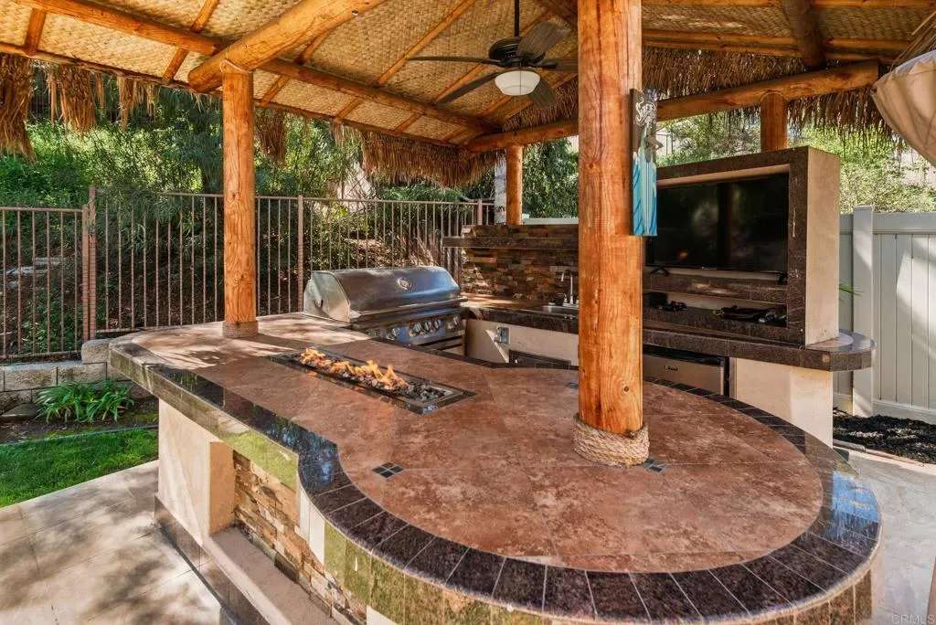 4.125% VA Assumable and available to non VA buyer !! Your very own tropical oasis awaits in the gated Arbordale community of Murrieta. This spacious single-story 5-bedroom, 2-bath pool home sits on an expansive .25-acre lot and offers the perfect blend of comfort, style and outdoor living. Inside, a bright open floor plan features a welcoming living and dining room combination, while the kitchen opens seamlessly to the family room with a cozy fireplace and direct access to the backyard—ideal for everyday living and entertaining. Granite countertops in the kitchen and bathrooms add a polished touch throughout the home. Step outside to a true backyard retreat complete with a sparkling freshwater pool and waterfall, plus an incredible palapa-covered outdoor kitchen featuring a BBQ, sink, TV, bar seating and a fire pit—creating the ultimate space for relaxing or hosting friends and family. 22 Solar panels that can be paid off at closing or assumed by the buyer. Ideally located within the community, this home is within walking distance to parks, shopping, dining and award-winning schools, and just minutes from the renowned Temecula Wine Country—offering the perfect balance of everyday convenience and weekend escapes. Open House first weekend on market Sunday 12-3pm