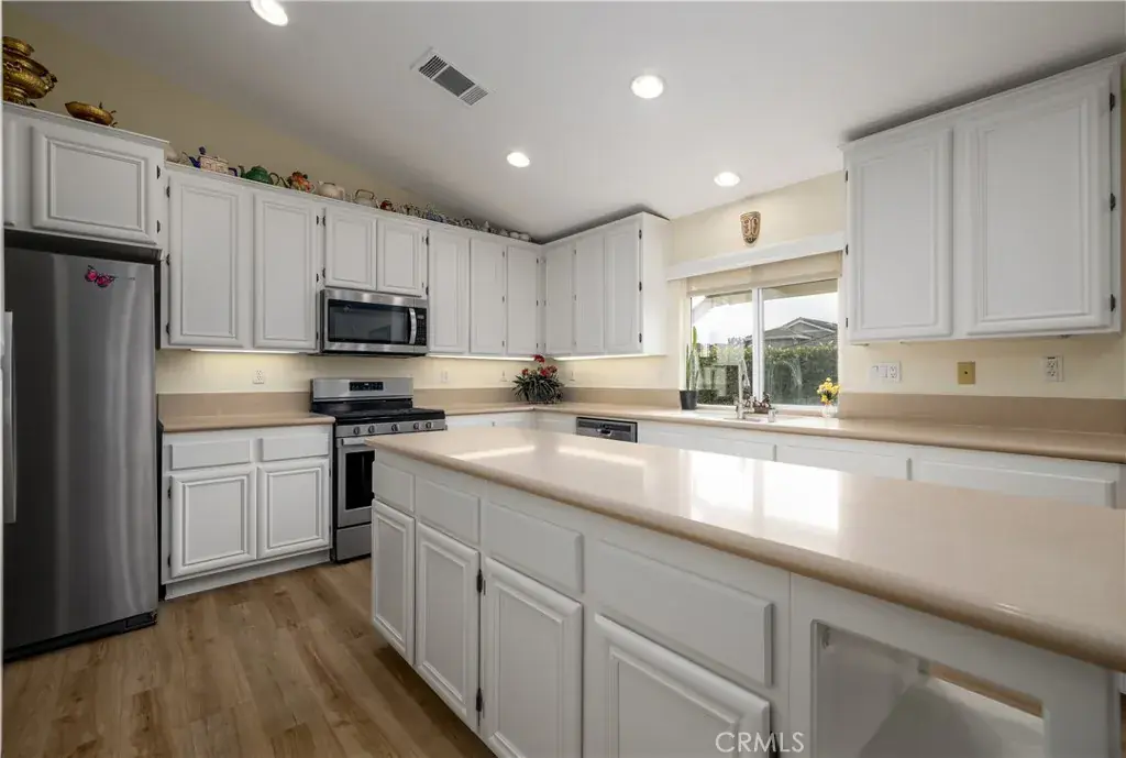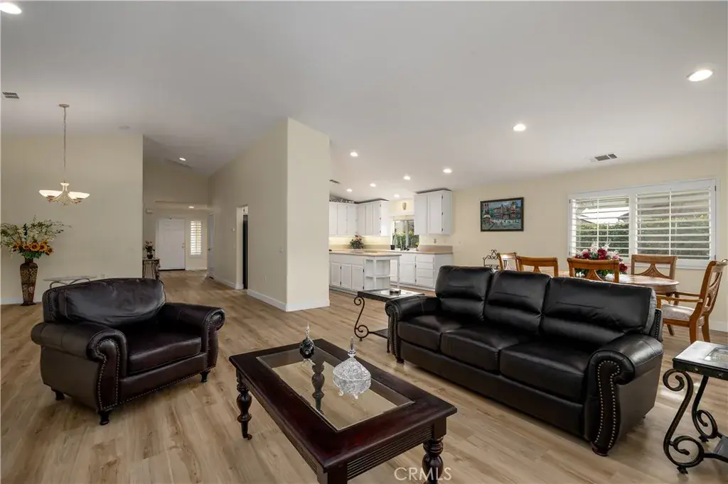 Welcome to 39559 Stags Leap Dr – a Turnkey, Move In Ready Home located in Four Seasons Murrieta 55+ Active Retirement Community! This home is the Craftsman 3 Floor Plan, featuring 3 bedrooms, 2 bathrooms, and 2,095 sqft of living space. Located on a corner lot, this home is on a 8,712 sqft lot that is well manicured for enjoying a peaceful afternoon on the patio. Inside, you will see the home has Luxury Vinyl Plank (LVP) flooring throughout – no carpet anywhere! The kitchen has lots of storage, white cabinets, stainless steel appliances, kitchen island, and opens to the breakfast nook and family room. There is also space for a dedicated dining room. There are plantation shutters throughout the home, French Doors to the back yard off the family room, and a slider to the back yard from the primary bedroom. Double doors separate the living space from the primary bedroom, which has enough space for a sitting area, dual walk-in and hall closet, dual sinks in the bathroom, and separate walk-in shower and soaking tub. The guest bedrooms are located in the front of the home, one with mirrored closet doors, and one with double door entry currently configured as an office or craft room. The backyard also has fruit trees, a shed, and a tiered Alumawood patio cover. The Air Conditioner was just replaced as well.