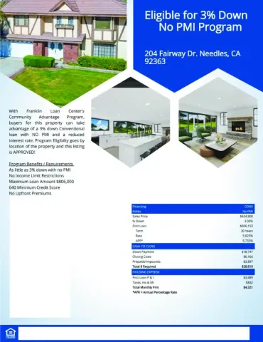 - Located in the Not Applicable-1 subdivision, 204 Fairway DR Needles CA is a Single Family for sale in Needles, CA, 92363. It is listed for $549,000 and features 4 beds, 3 baths, and has approximately 2,579 square feet of living space, and was originally constructed in 1986. The current price per square foot is $213. The average price per square foot for Single Family listings in Needles is $174. The average listing price for Single Family in Needles is $297,061. To schedule a showing of MLS#219144337da at 204 Fairway DR in Needles, CA, contact your James Outland agent at 8057482262.