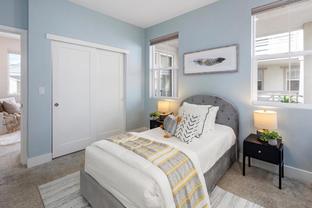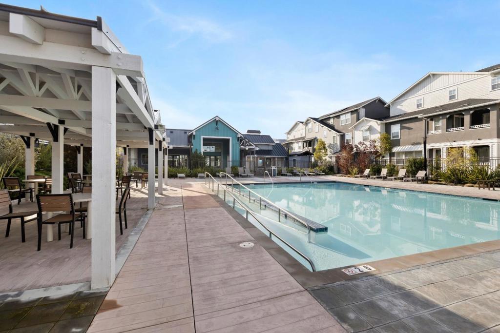Absolutely stunning and rare location and size! Built in 2020 this Lennar home features 2,478 sqft of light filled living space on an rare extra large lot at 2,803 sqft. Situated adjacent to the community pool and club house allows for a spacious backyard and views of the pool and community. The backyard has been custom upgraded to feature pavers, lush landscaping, sprinklers and multiple seating areas. Step inside and you are warmly greeted into the gracious common area. An open concept kitchen, dining and living area with custom electric blinds, high ceilings and sliding doors to the backyard for seamless entertaining. The second floor features a secondary living space – this loft is ideal as a cozy family room, reading room or children’s play area. 3 bedrooms, 2 bathrooms and two balconies on this floor provide ample space for bedrooms and a home office. The third level is a private primary retreat with a spa like bathroom, expansive walk in closet and multiple outdoor spaces. This home leaves little to be desired. Minutes to the 84, plazas and amenities. The community itself features ample recreation spaces including a community playground, pool and club house – all impeccably maintained.