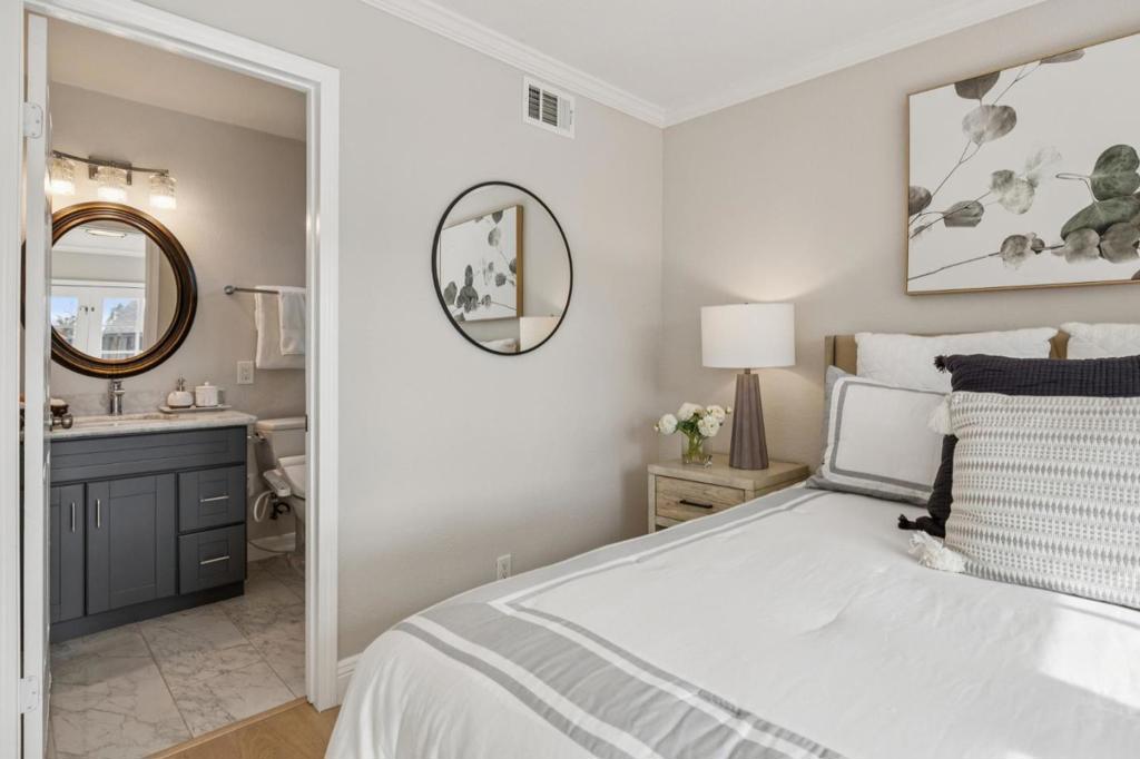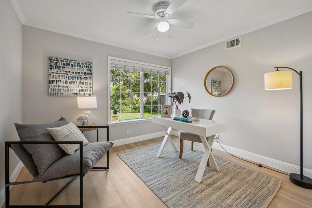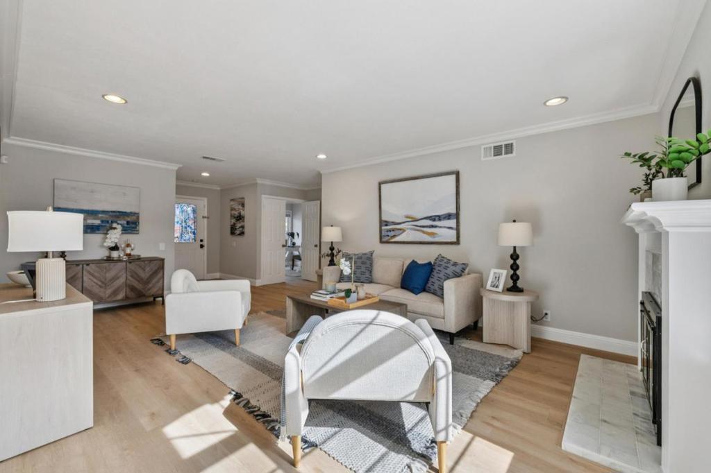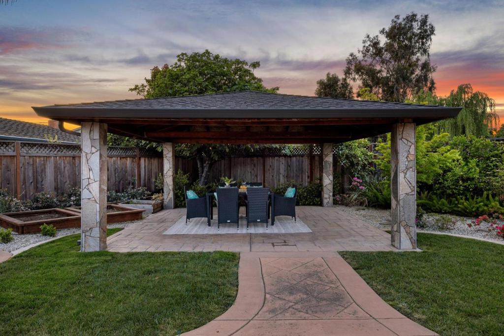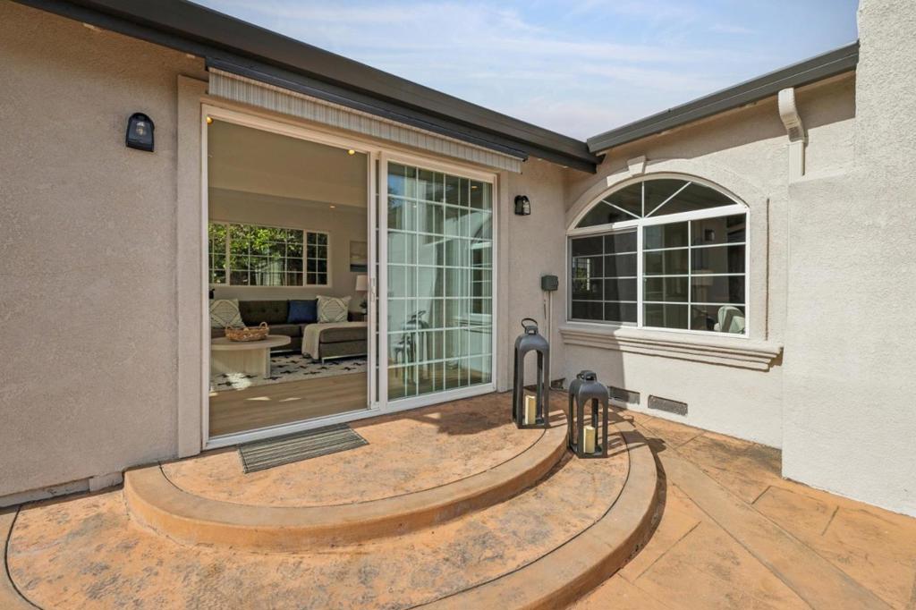 Beautifully updated home with vibrant landscaping, stamped concrete driveway & freshly painted exterior. Inside, a light-filled living room features a fireplace with marble tile surround. Remodeled kitchen offers shaker-style cabinetry, quartz countertops, tile backsplash & stainless-steel appliances, opening to a dining area and bright family room with bay window, and sliding glass door to backyard. Spacious primary suite includes a wall of closets, French doors to patio & updated ensuite with marble vanity & spacious walk-in shower featuring designer tile. 3 additional bedrooms & updated hall bath provide flexibility for guests or family. The tropical-inspired backyard features multiple patios including a pergola-covered area & sparkling pool with waterfall. Highlights include luxury plank flooring, fresh interior & exterior paint, recessed lighting, updated R-38 attic insulation, dual pane windows, central A/C & attached 2-car garage with laundry. Quiet cul-de-sac location just minutes from Lions Supermarket, local dining, only .5 mile to NewPark Mall complex featuring AMC, Costco, 24 Hour Fitness and The Newark Farmers Market every Sunday. Across the street sits Shirley Sisk Grove where you can enjoy the “Groovin’ at the Grove” free summer concert series on Friday evenings.