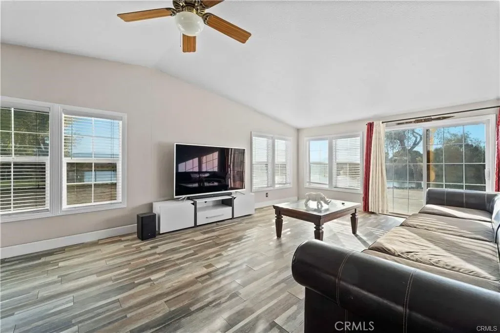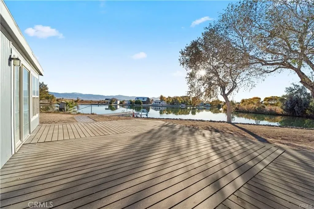 This stunning property is a turnkey lakefront oasis on a permanent foundation at Lake Wainani. The property features a 4-bedroom, 2-bathroom manufactured home on permanent foundation with over 2,280 square feet of modern living space. An open floor plan features high ceilings, a kitchen island for entertaining and updated paint and flooring throughout. A detached garage with a workshop provides the perfect opportunity to store your boat or off-road vehicles. The electric gated access provides security and privacy. The expansive 2.38 acre lot offers ample room for RV parking. Step out of the living room onto an expansive deck that directly faces the lake and includes a boat launch and private dock site. Lake Wainani provides a shared well for residents and the property features a conventional septic system and a roof mount solar power system for energy efficiency. This property offers breathtaking, unobstructed views of the lake and surrounding mountains and desert sunsets right from the deck. You can waterski by day and bbq in the evenings! Trade the city noise for lakefront tranquility, this property has it all!