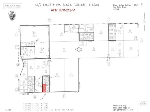 One of 4 adjacent parcels for sale, 4.04 Acres ( APN: 0531-212-51) This wonderful 4 Acres sits along Harvard Rd in Newberry Springs, CA. Newberry Springs is a quaint desert community located in San Bernardino County, California between Interstate 15 and Highway 40 to the east of Barstow, CA. This property lies within the unincorporated area of the San Bernardino County within the ‘Rural Living’ zoning. This Rural Living zone can be subdivided into 5 acre parcels. Rural Living allows for Single Family homes, Manufactured homes, accessory crop production, produce stand and agritourism enterprises, animal keeping, livestock operations, school, place of worship, park or playground, Bed & Breakfast and small residential care facilities. Overhead electricity is ONSITE along Fairview Rd. Residents in the area have private water wells for their water needs, septic tanks for their sewer needs and propane tanks for their gas needs. Adjacent parcels are also for sale, a total of 16 acres is available. Newberry Springs is known for its serene and picturesque landscapes, it offers a peaceful escape from the bustling city life. The area is famous for the mesmerizing views of the Mojave Desert, showcasing stunning sunsets and starry nights that attract stargazers and nature enthusiasts alike. With its unique blend of rustic charm and natural beauty, Newberry Springs offers a tranquil retreat for those seeking a genuine desert experience. Address is an approximation only (for marketing purposes) and has not been assigned to the property. This property does not yet have an address, the address listed is for marketing purposes only. While the boundary lines on the map offer a glimpse, they are only approximate. A Buyer should verify boundaries, zoning and utilities, ensuring every aspect aligns with their vision for the property.