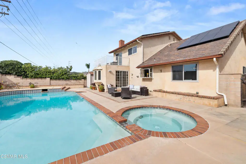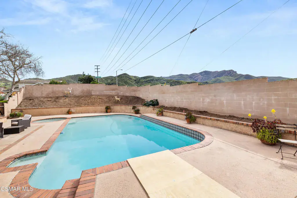 Welcome to this exceptional View/RV/Pool/Spa home in the heart of Newbury Park! Offering 3 bedrooms, 2.5 bathrooms, and approximately 1,839 square feet of living space, this home is designed for both comfort and entertaining. The inviting living and dining rooms flow seamlessly into an expanded family room featuring a charming bay window and cozy fireplace–perfect for relaxing evenings at home. The kitchen is beautifully appointed with granite countertops, stainless steel appliances, and a sun-filled bay window that brings in abundant natural light. Upstairs, the spacious primary suite includes an en suite bathroom with a tiled shower, bench seating, and an updated vanity. Two secondary bedrooms provide flexibility for family, guests, or a home office–one featuring a private balcony with sweeping, unobstructed views of Mount Boney. Additional highlights include hall bathroom with tiled shower/tub and granite vanity, indoor laundry, hardwood flooring, dual-paned windows, tankless water heater, upgraded electrical panel and solar panels for enhanced energy efficiency. Situated on a desirable corner lot with drought-tolerant landscaping, the private backyard is an entertainer’s dream–complete with a sparkling pool, spa, and substantial RV access. Conveniently located near schools, parks, and scenic hiking trails, this home offers the perfect blend of lifestyle, comfort, and location. This is one you won’t want to miss!