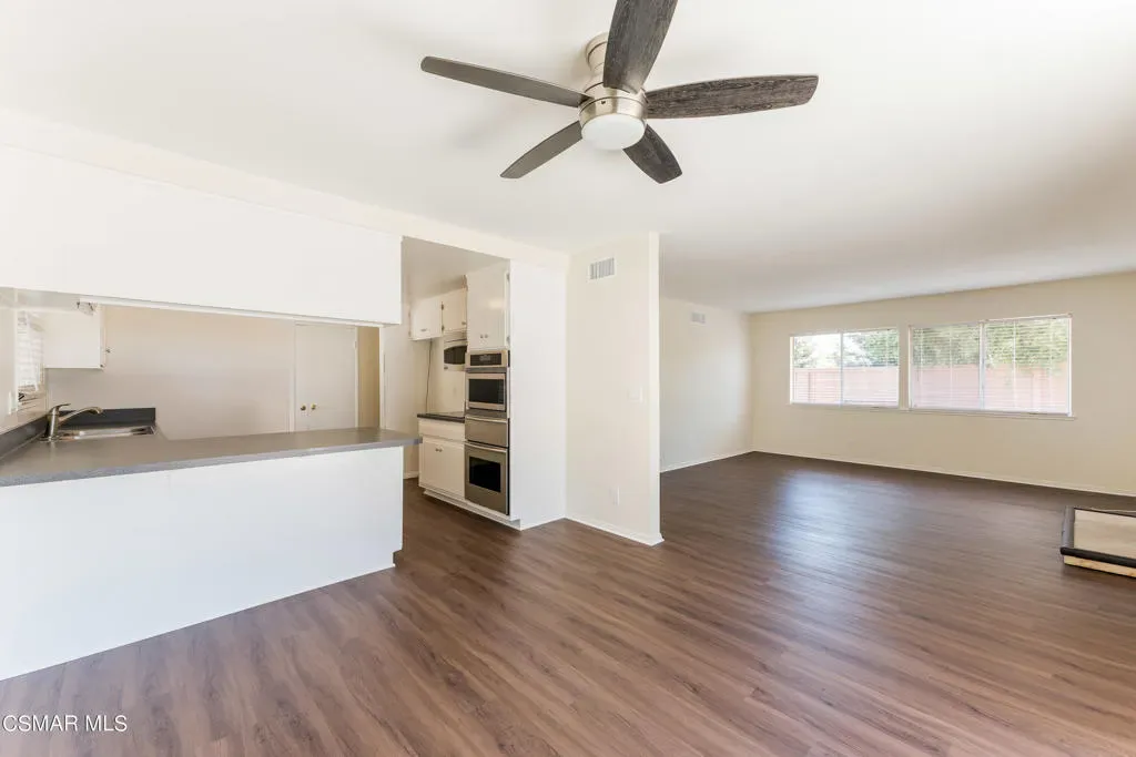 Charming 4-bedroom Newbury Park home. Laminate floors throughout. Big driveway for plentiful parking. Stainless steel oven and microwave, Formica countertops.Inviting fireplace in the family room.Low maintenance big backyard and front yard. Nice size side yard as well. Big 2 car garage. Nice family home near a convenient shopping mall and incredible biking and hiking trails. Gardener included. Sorry no pets.