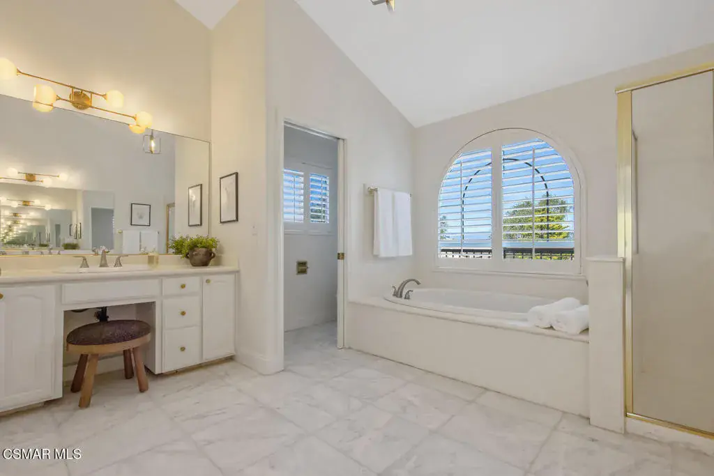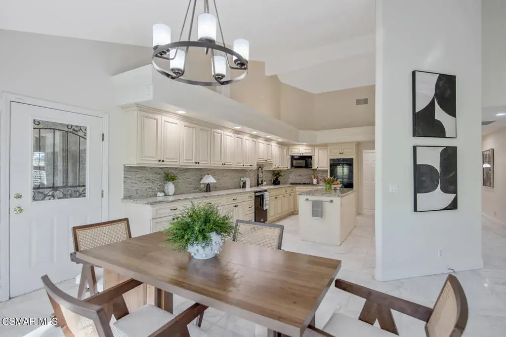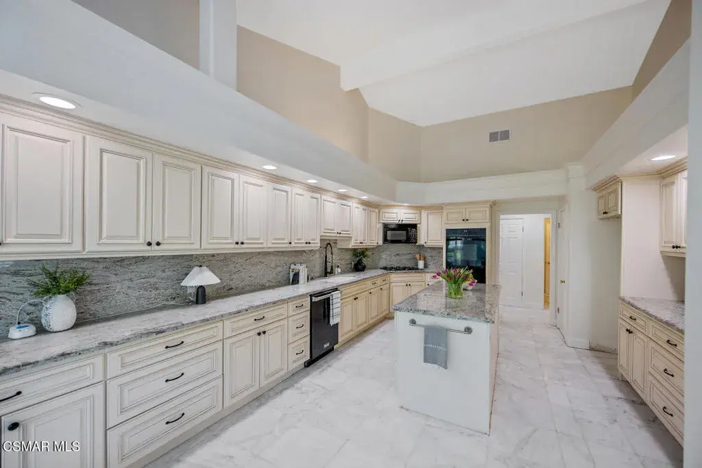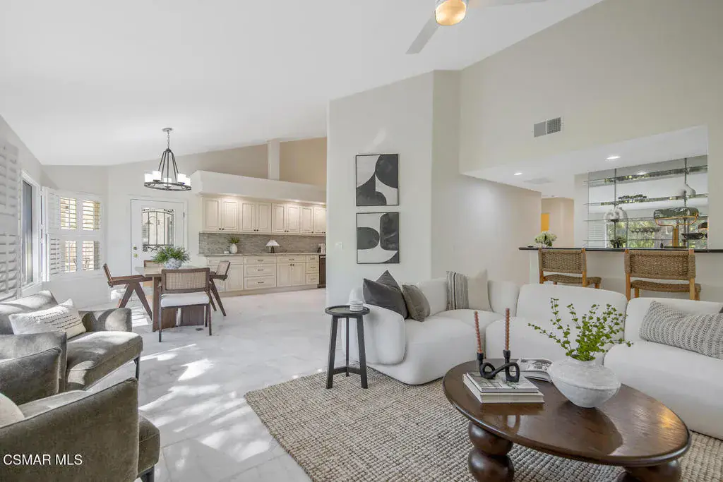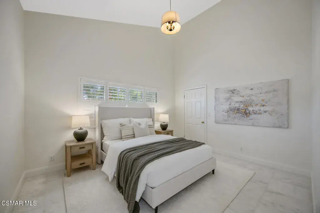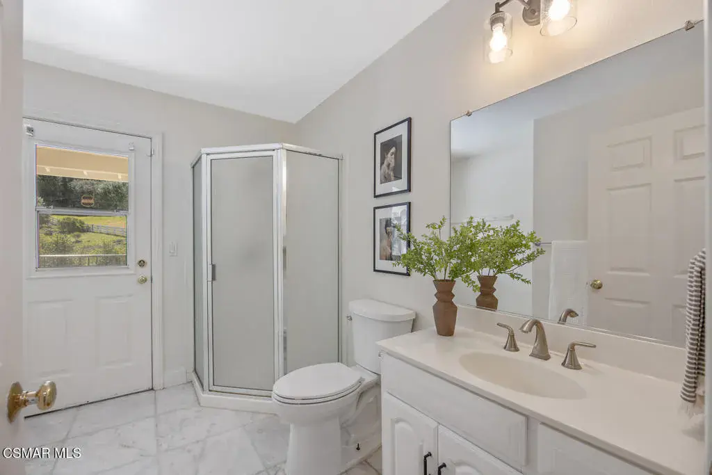 This ONE-STORY custom estate has VIEWS so spectacular they look like a painting. Sitting on a ONE ACRE lot with stunning pastoral and mountain views from almost every room, this one-of-a-kind home is beautiful, unique and private. Enter the spacious living room with soaring vaulted ceilings, a cozy fireplace, and a wall of windows looking right out onto those panoramic views. Enjoy your coffee in the morning or a glass of wine at sunset out on the wrap-around deck while you take in the views of the pastures, mature trees, lush landscaping, and even a charming bridge and a creek that runs through the backyard. This yard is so large there is room for up to two horses, a barn, a large pool, and/or an ADU. Plus, below the one-story home there is a HUGE 500 sq ft BONUS ROOM with a separate entrance. This bonus space has endless possibilities such as a guest room, office, art or music studio, or an ADU (granny flat). As an additional bonus, under the home there is also a huge additional enclosed storage area, and plenty of room for additions.The main home features beautiful real Carrara marble floors throughout, new designer lighting, and plantation shutters. Enjoy cooking in the large gourmet kitchen with a huge island, tons of cabinets, and granite countertops that are gorgeous and still contemporary. The kitchen opens to the sizeable great room with a fireplace, eating area, groovy bar for entertaining, and a door out to the patio looking out to the most beautiful scenes. The primary bedroom is a peaceful retreat complete with high ceilings, spectacular views, his and herswalk-in closets, and a large en-suite bathroom with dual vanities, stall shower, and a soaking tub. Generously sized secondary bedrooms are complemented by two additional bathrooms, offering comfort and flexibility for family and guestsalike. The brand-new wraparound deck/porch provides the perfect setting to take in the spectacular scenery of the surrounding mountains and evening lights, while an outdoor pergola with electricity creates an ideal space for relaxing, or hosting. This home also has a HUGE storage space underneath the home, and a new security system. With its unparalleled views, usable acreage, and seamless indoor-outdoor flow, this one-of-a-kind property delivers privacy, beauty, and exceptional versatility in a truly unforgettable setting.