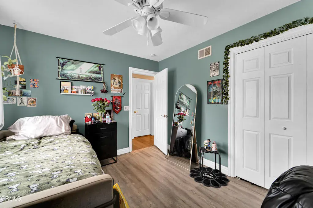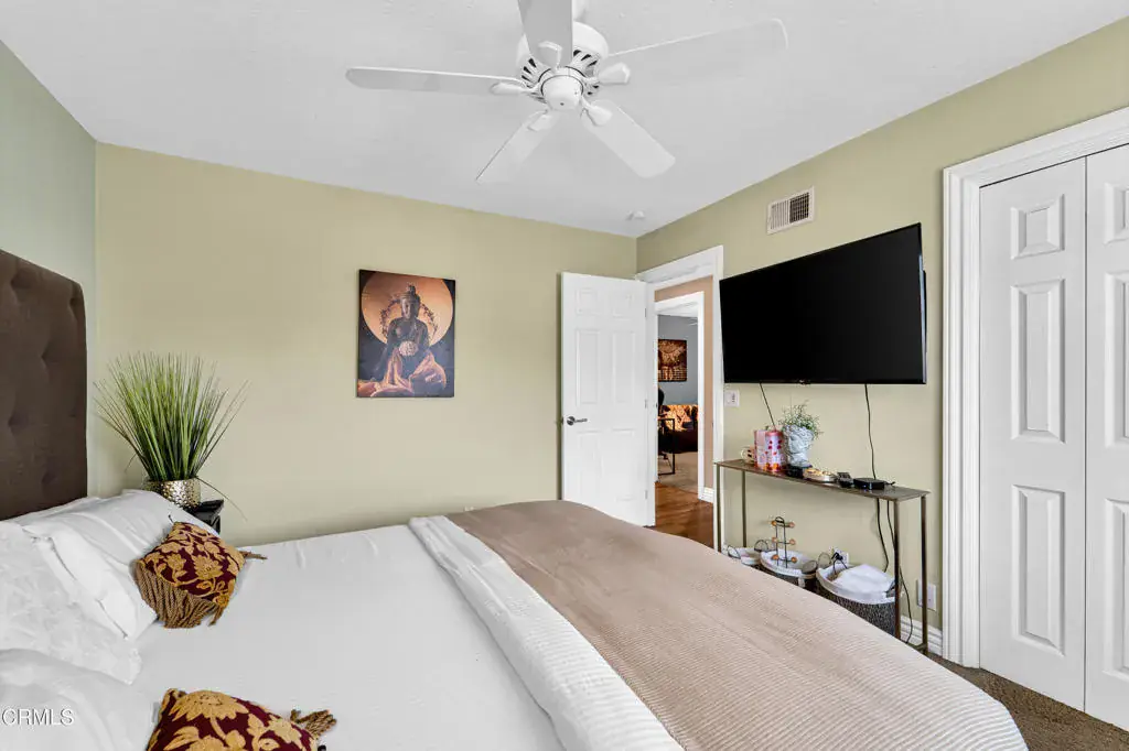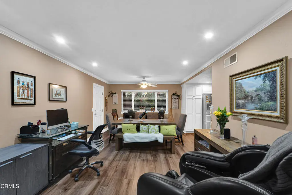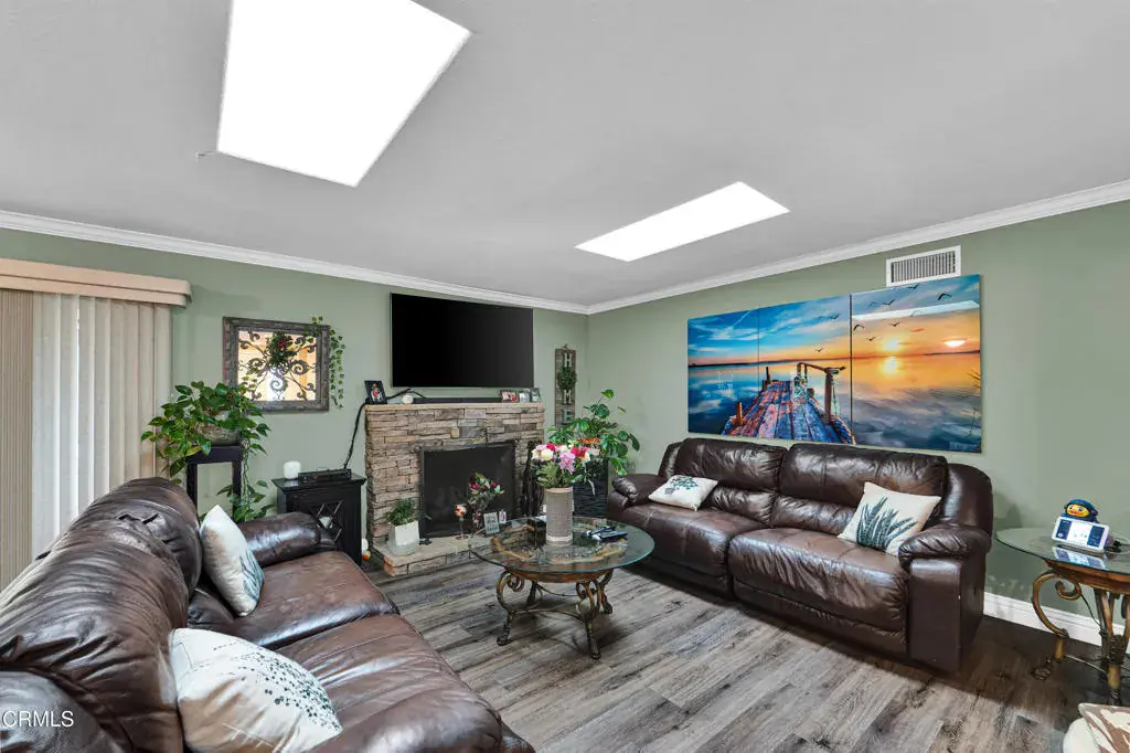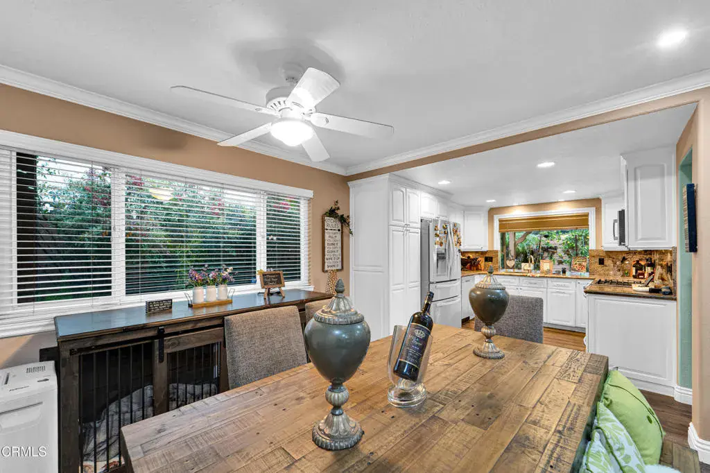 Welcome to 219 Castilian Ave, a beautifully maintained and thoughtfully upgraded home nestled in a desirable Newbury Park neighborhood. Offering 4 bedrooms, 3 bathrooms, and approximately 2,015 sq ft of living space, this residence blends comfort, functionality, and outdoor enjoyment. Nice open floor plan with large kitchen open to family room and living room open to dining room. Many features include: custom white cabinets in kitchen with pull outs, granite counters, stainless steel appliances & garden window, crown moldings and large baseboards, 6 panel interior doors, beautiful leaded glass front doors, skylights in living room with stacked stone fireplace, smooth ceilings, vinyl (wood type) flooring, tile roof, attic fan, replaced attic insulation, closet organizers and ceiling fans in all bedrooms, large storage shed in the backyard, custom built side yard covered storage area, and more! Step outside to enjoy mountain views from the backyard! This property has good curb appeal with exterior trim, rain gutters, fence and patio cover. Property in move in condition!