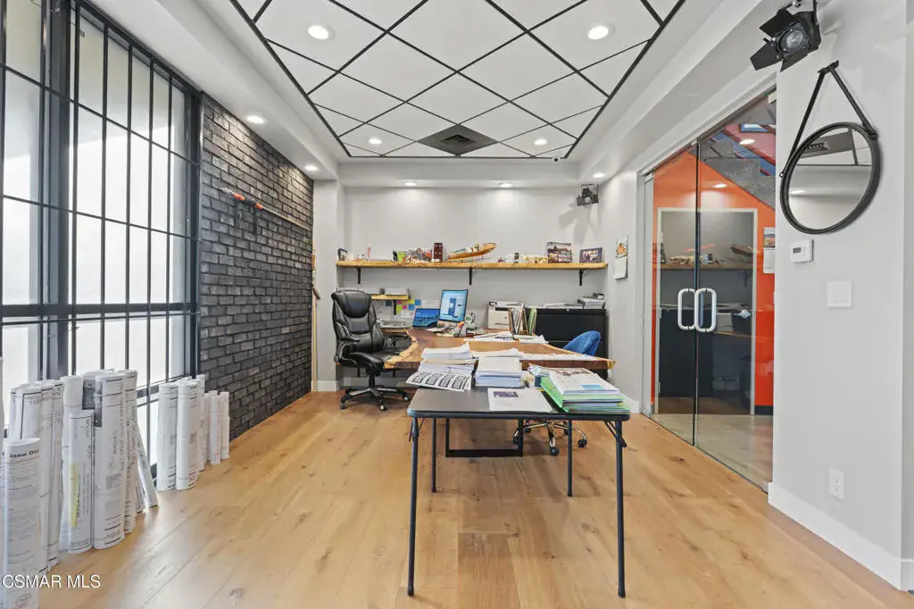Rare opportunity to own a fully upgraded industrial car condo in the heart of Newbury Park, designed specifically for the serious collector or automotive enthusiast. This turnkey unit is the ultimate private showroom and storage space, thoughtfully built out with premium finishes and an expanded mezzanine to maximize functionality and style.The main level offers pristine, open warehouse space ideal for showcasing and storing your collection. High ceilings and clean architectural lines create a true gallery feel, while upgraded lighting highlights every detail of your vehicles. The expanded mezzanine adds significant usable square footage and features a private office overlooking the showroom floor, allowing you to work while enjoying a full view of your collection below.A full bathroom with shower and custom bar setup elevate the space beyond simple storage, making it perfect for entertaining, hosting private gatherings, or spending extended time on-site. Every detail has been completed, making this unit completely move-in ready with no additional buildout required.Whether you are a collector seeking a secure and sophisticated home for your cars, a business owner looking for a high-end automotive workspace, or an investor targeting a niche asset class, this Newbury Park car condo delivers versatility, style, and long-term value.A true car collector’s dream and a rare offering in one of Ventura County’s most desirable industrial communities.