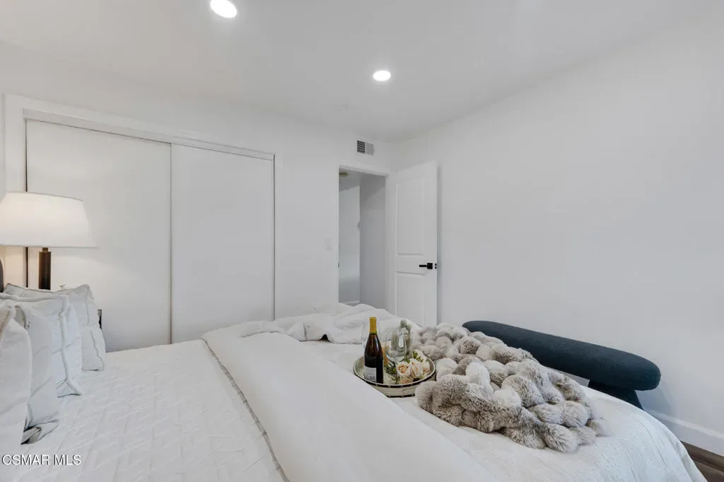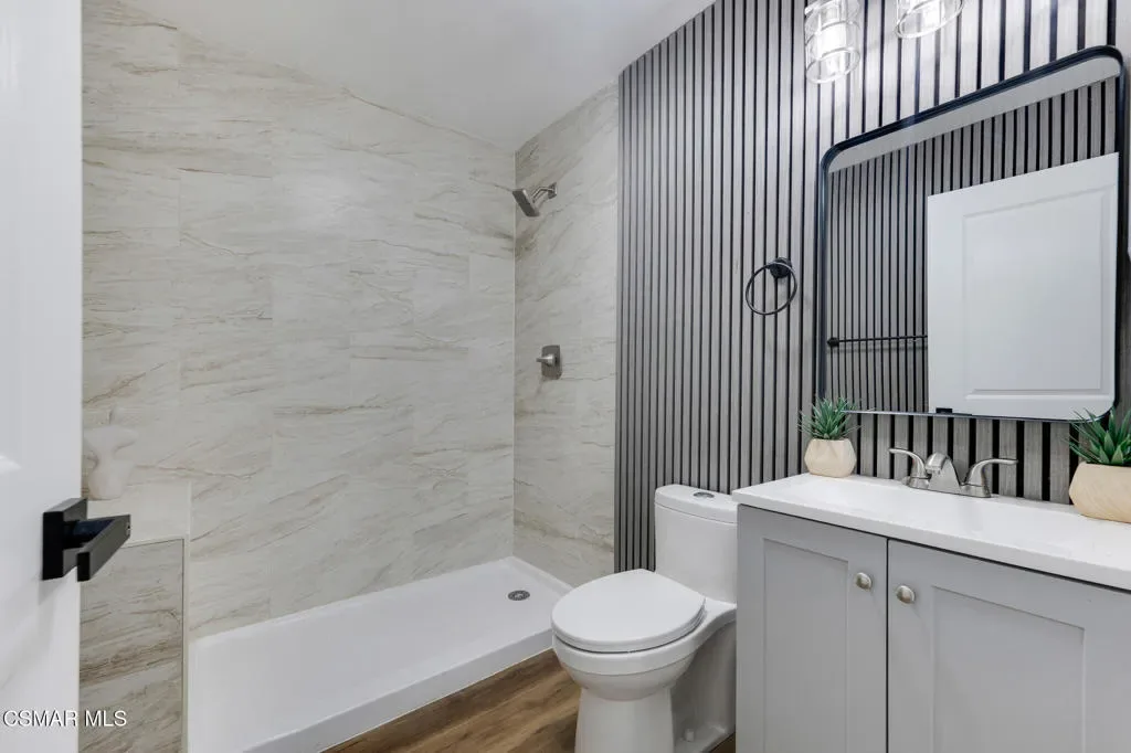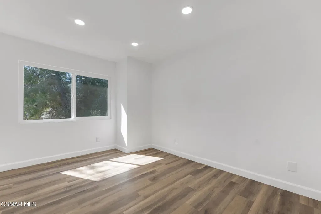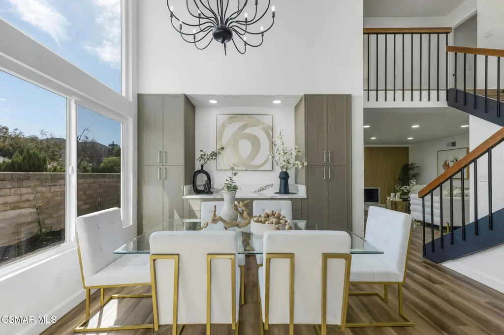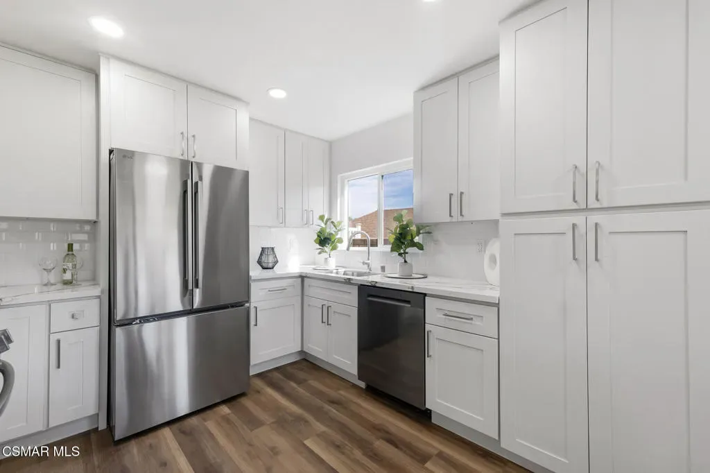 Gorgeously remodeled and brimming with natural light, this stunning two-story home on Pamela Wood in Newbury Park delivers the perfect blend of modern sophistication and comfortable family living. Set within a welcoming, family-friendly neighborhood, the home immediately captivates with a beautifully updated modern exterior, fresh landscaping, and a charming olive tree anchoring the front yard. Step inside to discover a thoughtfully designed floor plan where a formal living room and dining area are bathed in abundant sunlight streaming through large picture windows, creating an inviting atmosphere from the moment you arrive. The completely remodeled kitchen is a true showpiece, featuring sleek new cabinetry, elegant countertops, a gas cooktop, new stainless steel appliances, and a generous peninsula that flows seamlessly into the open family room — ideal for everyday living and effortless entertaining. Adding exceptional versatility, the main level offers a generously sized bedroom and full bathroom, perfectly suited for multi-generational living or anyone who prefers single-story convenience. Upstairs, three spacious bedrooms provide ample room for the entire family, complemented by a fully renovated hall bathroom. The primary suite is a true retreat, boasting impressive proportions, a beautifully renovated en-suite with a dual vanity and custom shower. Thoughtful upgrades abound throughout the home, including brand new matching flooring, new windows, and new LED recessed lighting in every room. Step outside to a private backyard retreat, framed by mature trees and finished with easy-care modern landscaping — a serene space to relax and unwind. Perfectly situated just minutes from The Oaks Mall, premier shopping, and an array of dining options, this move-in ready home offers an unparalleled combination of style, comfort, and convenience. A truly exceptional opportunity in one of Newbury Park’s most desirable neighborhoods!