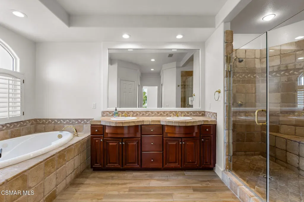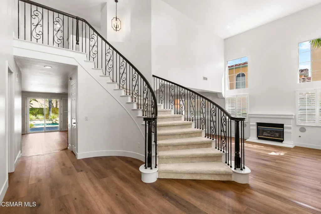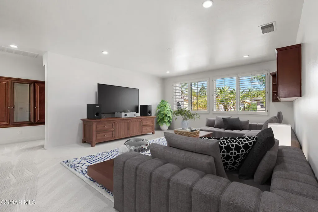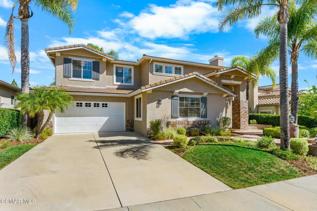 This property is a dream come true for a large family! The curb appeal on this cul-de-sac location draws you in even as you drive by. From the moment you walk through the front door and step into the foyer you notice the soaring ceilings with abundant windows offering wonderful light and bright ambiance! The residence offers 5 bedrooms with 3 full and 1 half bathroom PLUS lower level, double-door entry office AND upper level game room with a most desirable floorplan. (Some photos are virtually staged). The primary suite has its own ‘wing’ featuring brand new neutral carpeting, slider to viewing balcony, coffered ceiling, dual walk-in closets, en-suite bathroom with oversized stall shower, dual vanity, spa tub and private water closet with window to exterior. The remaining three upstairs bedrooms are all spacious and include brand new neutral carpeting. The convenient hall bath has a dual vanity and a separate water closet with toilet and shower/tub combination. The 5th bedroom is downstairs with a private en-suite bathroom and is great as a guest room. The powder room has a pedestal sink, commode and rounds out the bathrooms. There is a formal living room with one of two fireplaces, formal dining room with custom chandelier and wine fridge, lastly the family room with second fireplace, built-in desk, additional storage and a slider to the rear yard. The kitchen with breakfast room and bar, walk-in pantry also has new double ovens (2025), new Subzero refrigerator (2021), beverage fridge (2026), new Bosch dishwasher (2024). In addition, CHECK OUT THIS LIST of other amenities: *interior paint throughout (2026), *new neutral carpeting (2026) *new luxury vinyl plank flooring (2026) *fresh exterior paint including trim details (2023) *HVAC, water heater and pool pump replaced in last few years. The rear yard with inviting, sparking pool and waterfall spa is a great space to play, relax, entertain and enjoy our wonderful weather: upgrades include colorful landscape with recently replaced BBQ grill, sprinklers and low voltage lighting (2024) *dual-paned windows, *Plantation shutters, *indoor laundry room, *new hardware on all raised-panel interior doors, *concrete shake roof ALL THIS AND SO MUCH MORE!