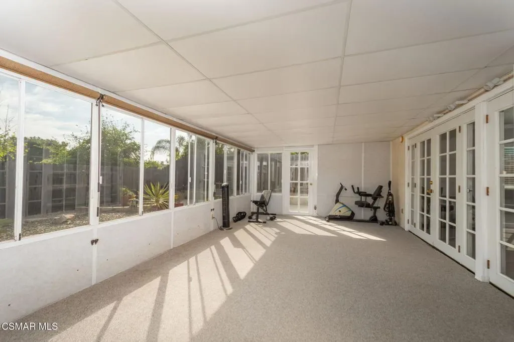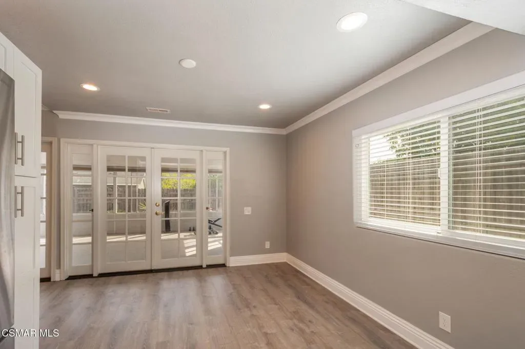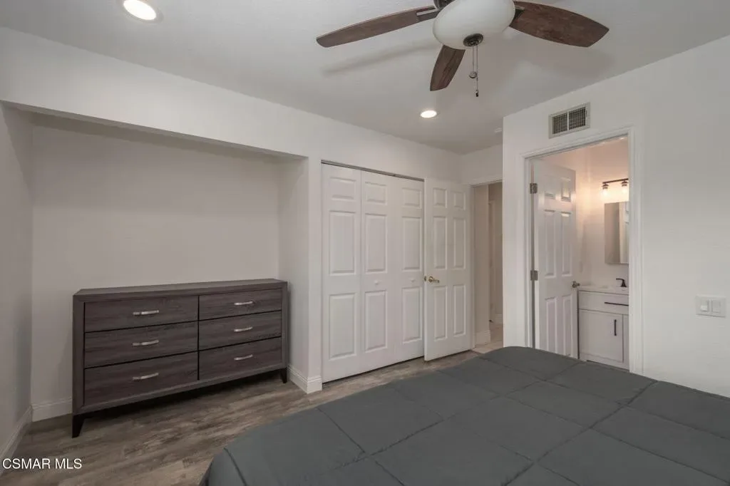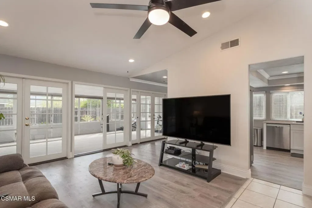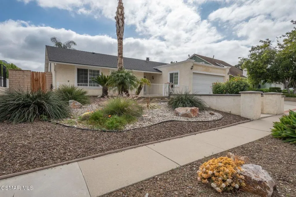 This charming single-story home offers breathtaking Boney Mountain views & RV access is ideally situated in a desirable neighborhood, mere moments from parks, schools, and scenic hiking & biking trails. Boasting 4 bedrooms and 2 baths, the residence features an extensively re-modeled kitchen with elegant quartz countertops, newer cabinetry, stainless steel appliances and a stylish tiled backsplash. The spacious living room is highlighted by a cozy fireplace and vaulted ceilings, while the primary bedroom provides captivating mountain views and a beautifully updated en-suite bathroom. Further enhancing its appeal, the hall bathroom has also been tastefully upgraded with a tiled shower. Practical amenities include over 50 ft of paved RV access, newer vinyl plank and laminate flooring throughout most of the house. and a thoughtfully designed hardscaped backyard with a newer patio, walkway, drainage and landscaping for effortless outdoor enjoyment. Enclosed patio room not included in the square footage but gives you more space. Other features include dual pane windows, central air, crown molding, recessed lighting throughout, ceiling fans in all bedrooms and so much more!!